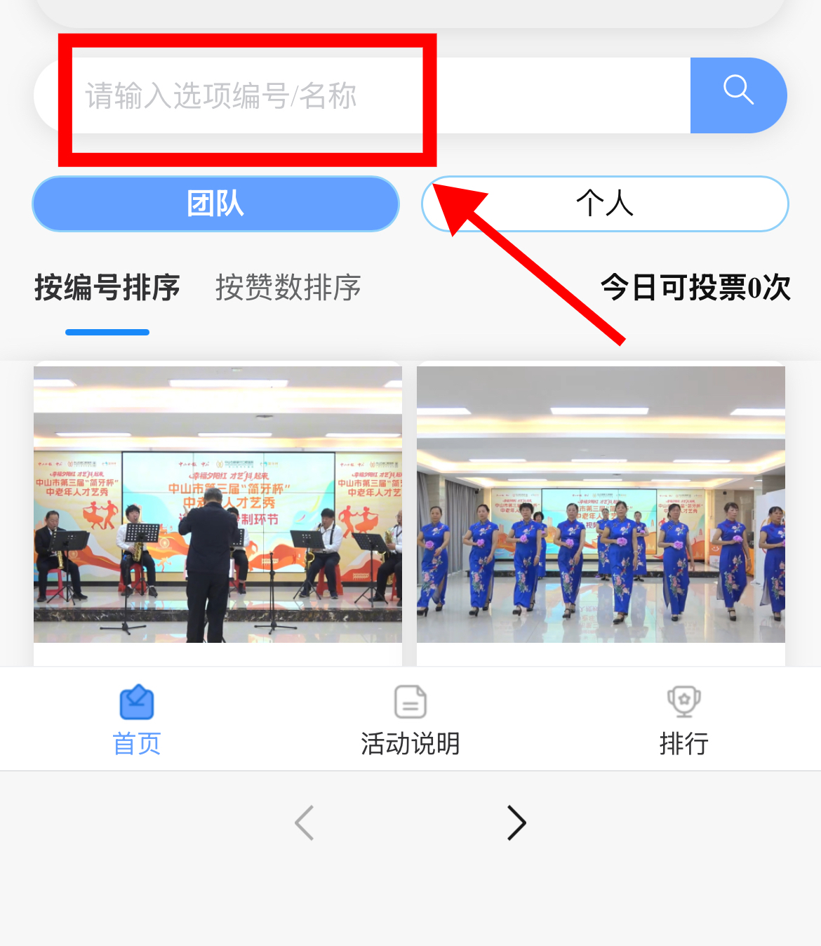 点击上方按钮即可进入点赞界面,可通过搜索【作品编号/名称】找到你心仪的作品,点击“投票”即可完成助力: