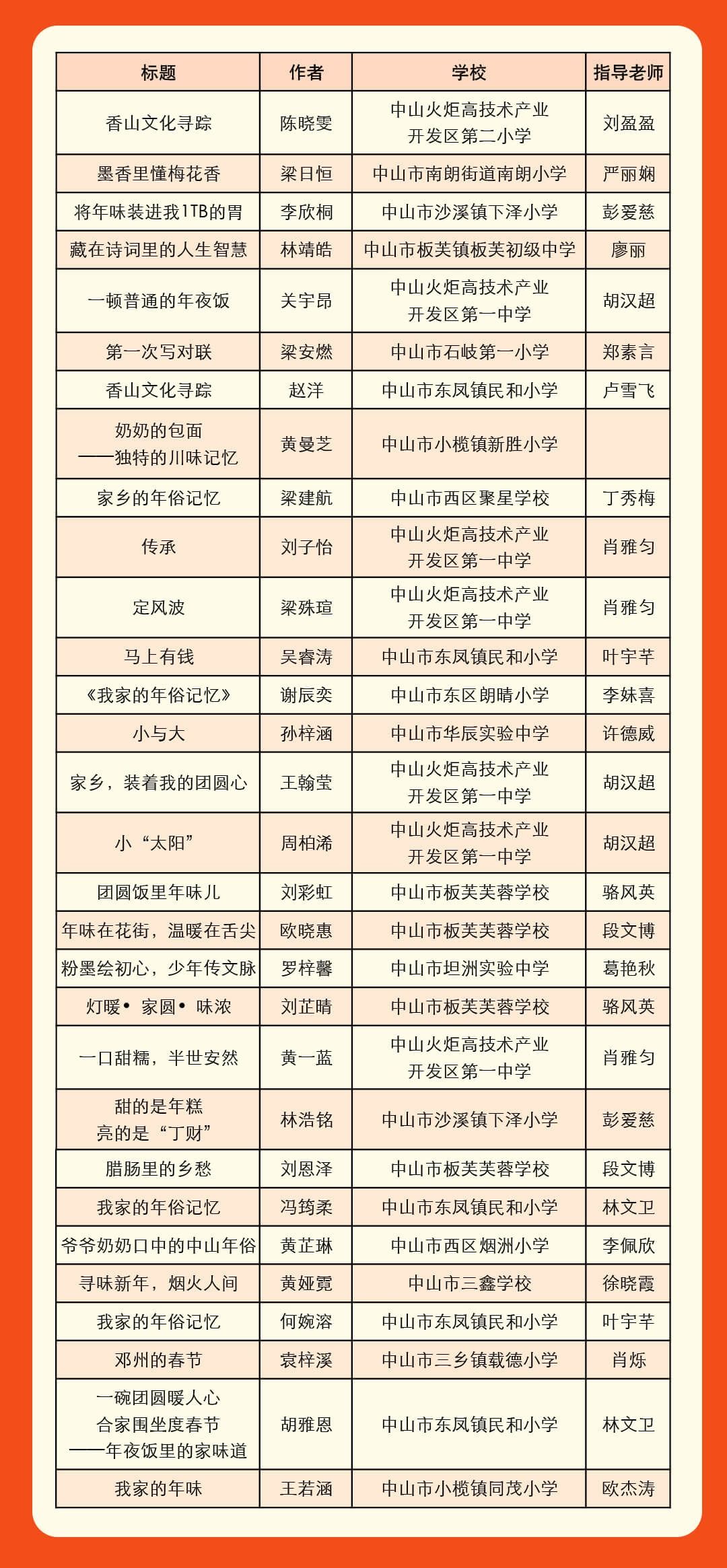 本次主题征文所有符合要求的投稿,已经全部公开展示在中山学生作文开放平台;被精选的作品,可获得证书奖励;被“中山+”教育频道采用的稿件,可获“证书+稿费”。