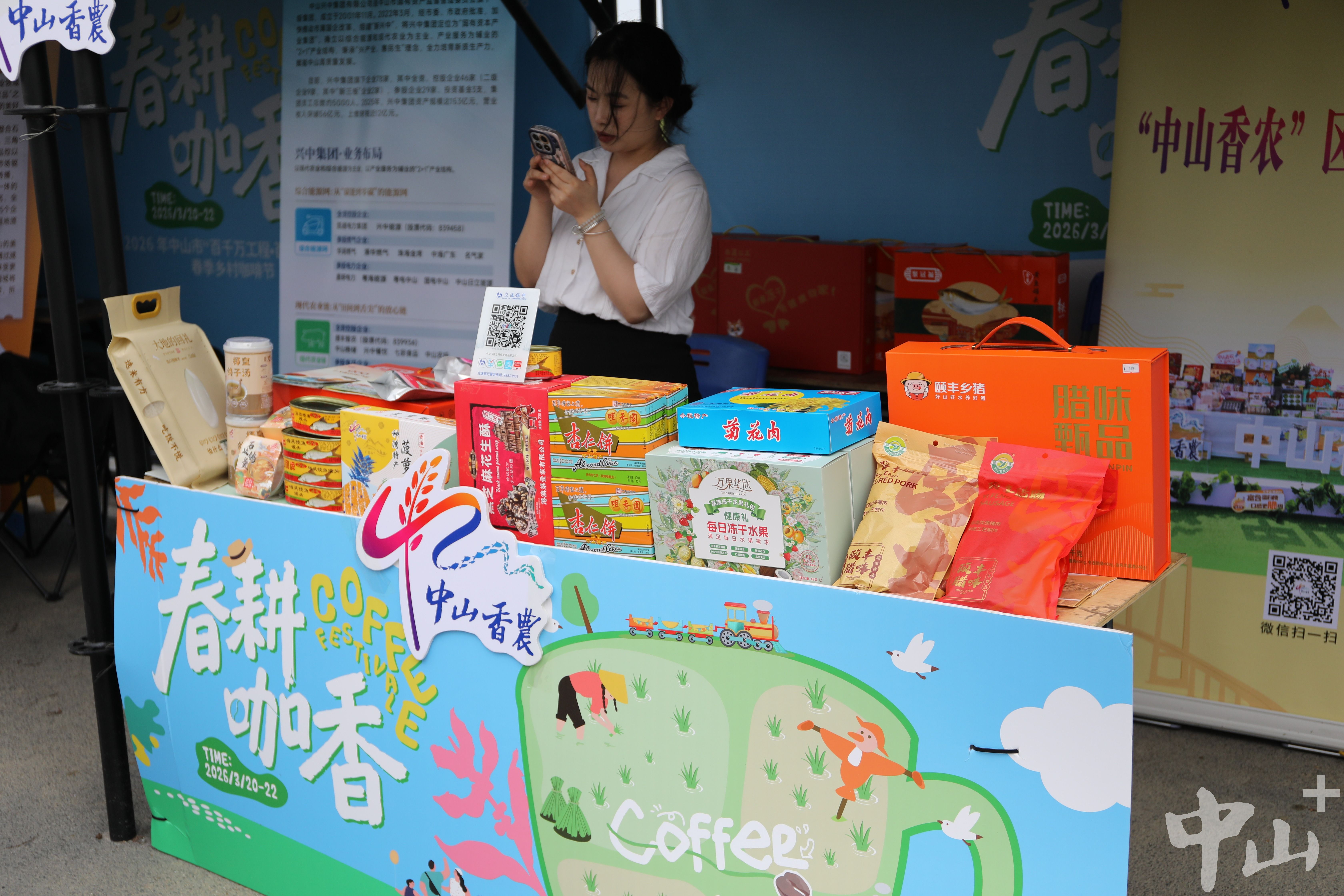 在咖啡节的展位上,中山市农业投资发展有限公司的香农产品展位前人头攒动,“公司带来了近50种‘中山香农’产品,涵盖腊味、罐头、冻干糕点等多个品类,更有‘春夏秋冬’四款香农礼盒惊艳亮相。”公司代表毛俊云介绍到,“崖口本身是知名旅游景点,咖啡节又吸引了大量客流,为我们推中山香农区域品牌提供了绝佳平台。”毛俊云表示,作为整合中山优质农产品的区域性品牌,香农品牌正借着咖啡节的东风走进大众视野,让更多人了解中山的优质农产,也让本土农产品搭上文旅融合的快车,走出中山、走向大湾区。