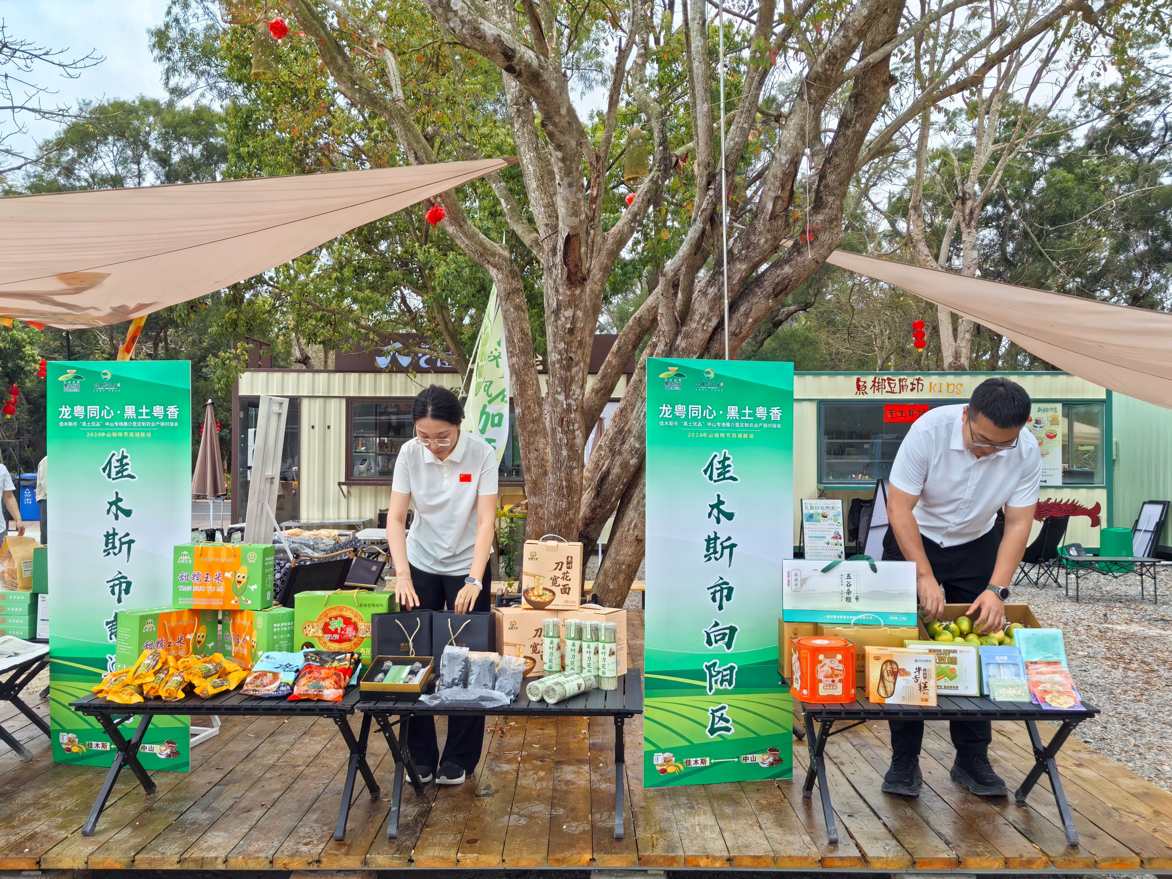 南朗崖口村主会场,石岐孙文西路步行街、曹边村、雍陌村等9个点位,佳木斯大米、佳木斯木耳、抚远蔓越莓、桦南紫苏、抚远鲟鳇鱼等黑土农产好物与乡野咖啡碰撞出别样火花。