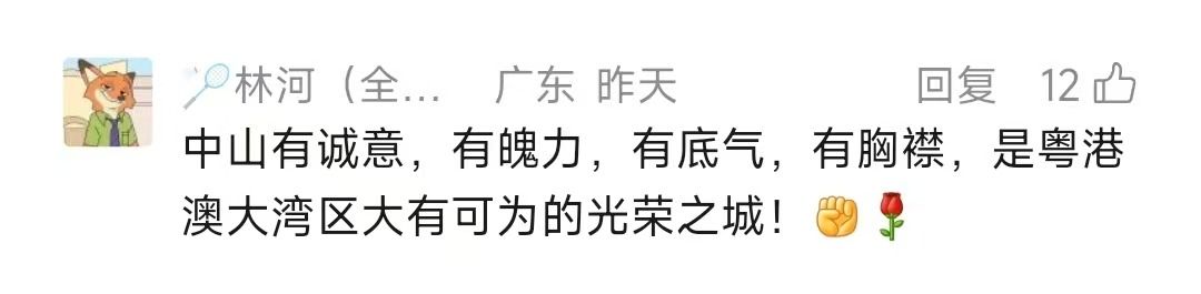 一句句热切的留言,一声声真诚的赞许,成为中山城市形象最生动的注脚。赛场之上,中山队以拼搏彰显城市精神;赛场之外,中山以诚意迎接八方来客。此次粤BA赛事搭起了两地的友谊之桥,而中山推出的一系列暖心福利,更让这份情谊持续升温,也让更多人看到了中山开放包容、宜居宜游的城市魅力。