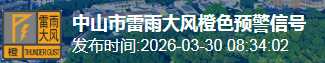 中山市气象台2026年3月30日8时34分将全市雷雨大风预警信号升级为橙色,请做好各项防御工作。
