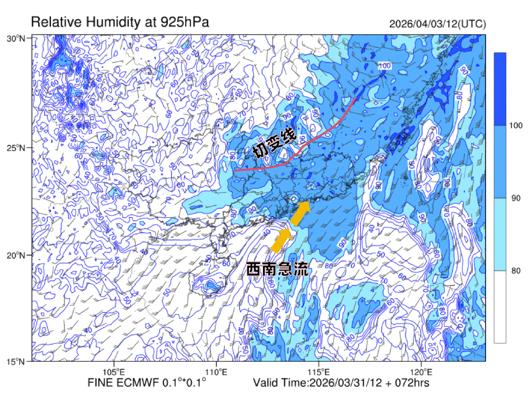 2026年4月3日20时925hPa相对湿度数值预报图。