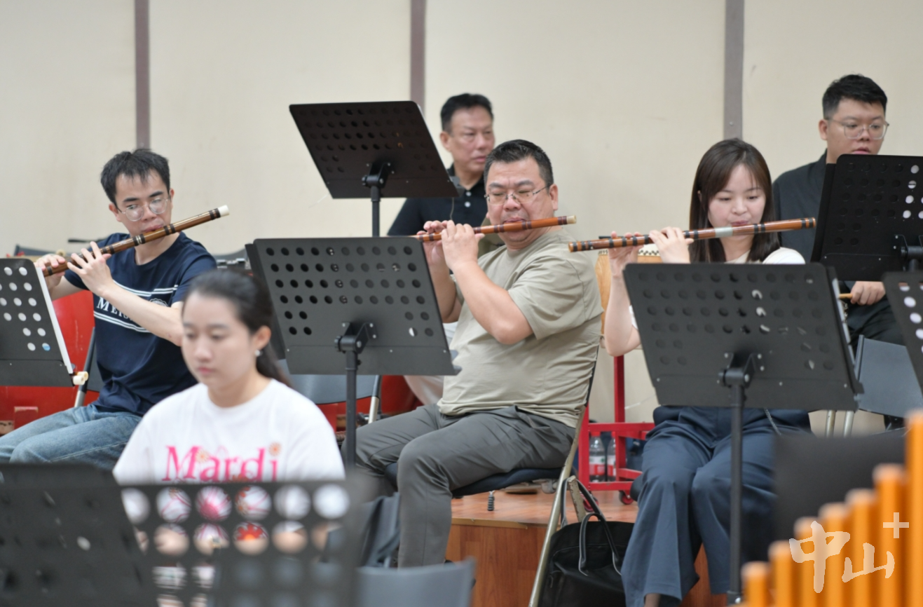 这支成立近三年的乐团,成员跨越中山、深圳、珠海等湾区城市,涵盖中小学教师、培训机构从业者、退休艺术家等群体。鸦岗小学音乐教师、乐团中阮演奏员古凯悦感动地说:“很多老师从珠海、更远的地方清晨就赶过来,利用课余时间反复打磨技艺。他们不计得失,只为呈现最好的状态。”