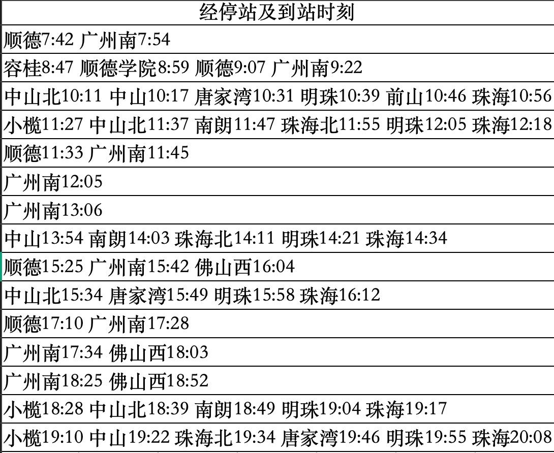 下行方向(往珠海),多线并行,覆盖广佛两城。南头站下行方向共开行6趟列车,始发站涵盖佛山西、广州南、三水南,终到站均为珠海,形成“多点进珠海”的放射状布局。