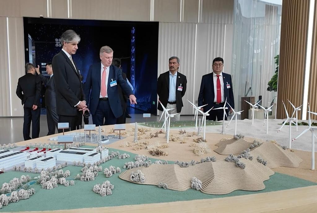 在中山明阳智慧能源集团股份公司,香港瑞士商会主席盛勋文兴趣浓厚,认真观摩能源产品与技术模型。该企业深耕全球风电及新能源领域,积极推动国际供应链战略合作。盛勋文谈及此前与家人到访中山,已领略其人文自然之美,此次参访更直观感受到当地优良的营商环境与智能制造实力,认为瑞士和中国在可再生能源领域合作空间广阔。