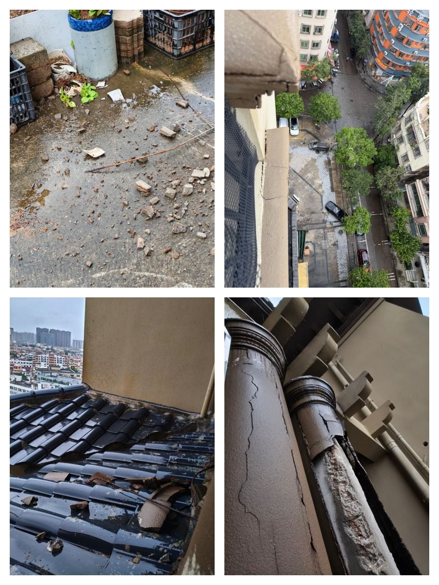 “中山+”用户:坦洲镇东平路26号金帝秀悦轩小区外墙多处脱落,自2025年开始多次向物业反映,但未得到处理,脱落不断,安全隐患极大,希望协助尽快处理。