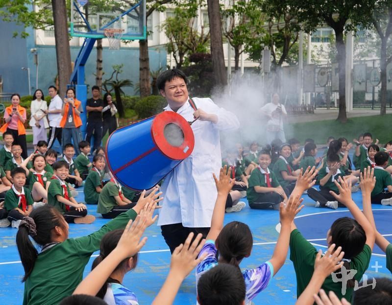 开幕式上,奇幻科学秀点燃全场热情。马德堡半球实验、魔幻泡泡秀、趣味空气炮等经典实验,用生活中的常见材料揭秘科学原理,引发同学们热情参与、阵阵欢呼。