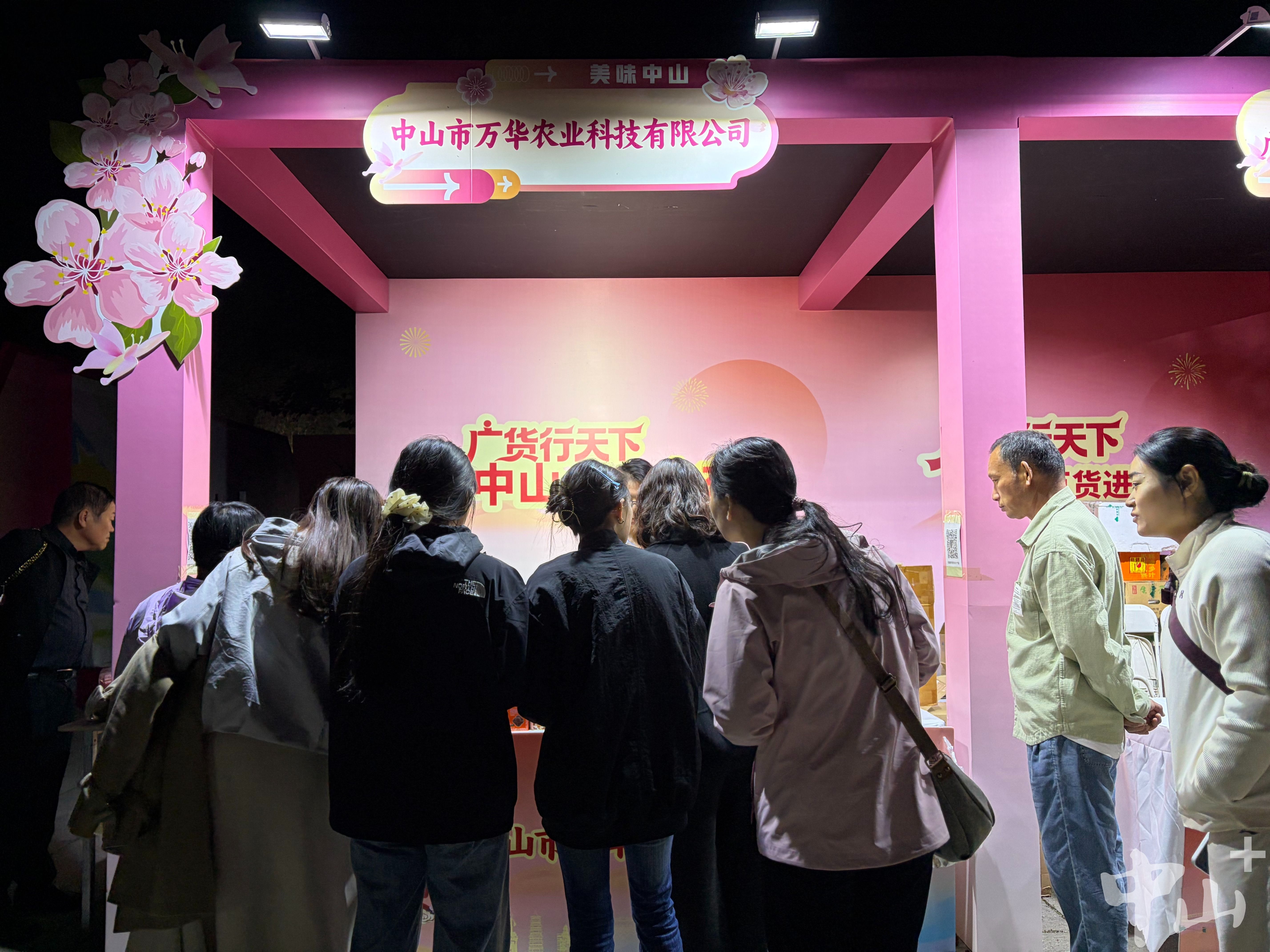 展区内各个摊位整齐排布,琳琅满目的商品吸引了众多游客驻足挑选。时近晚上9时,在中山市万华农业科技有限公司展位前,还围有不少游客咨询商品。这是万华农业董事长邱海燕连续五次参加“广货行天下·中山百货进N城”系列活动,带着化橘红润喉糖、龙眼干、冻干火龙果、冻干芒果等产品,她收获满满。