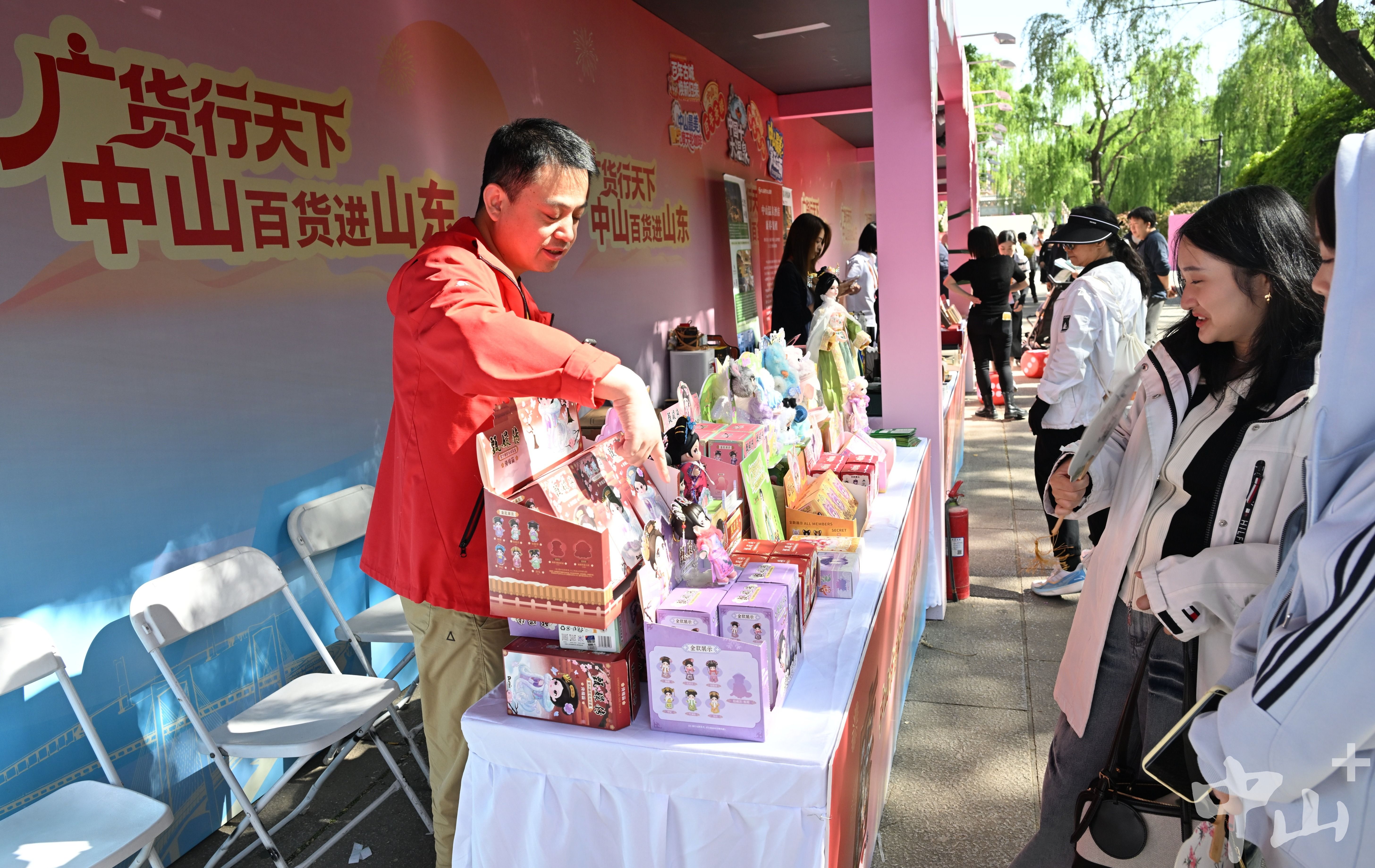 4月20日,“广货行天下·中山百货进山东”活动在济南大明湖景区超然楼广场启幕,来自中山的各类名优特产齐聚泉城,让山东市民近距离感受岭南特色好物的独特魅力,现场人流如织、购销两旺。