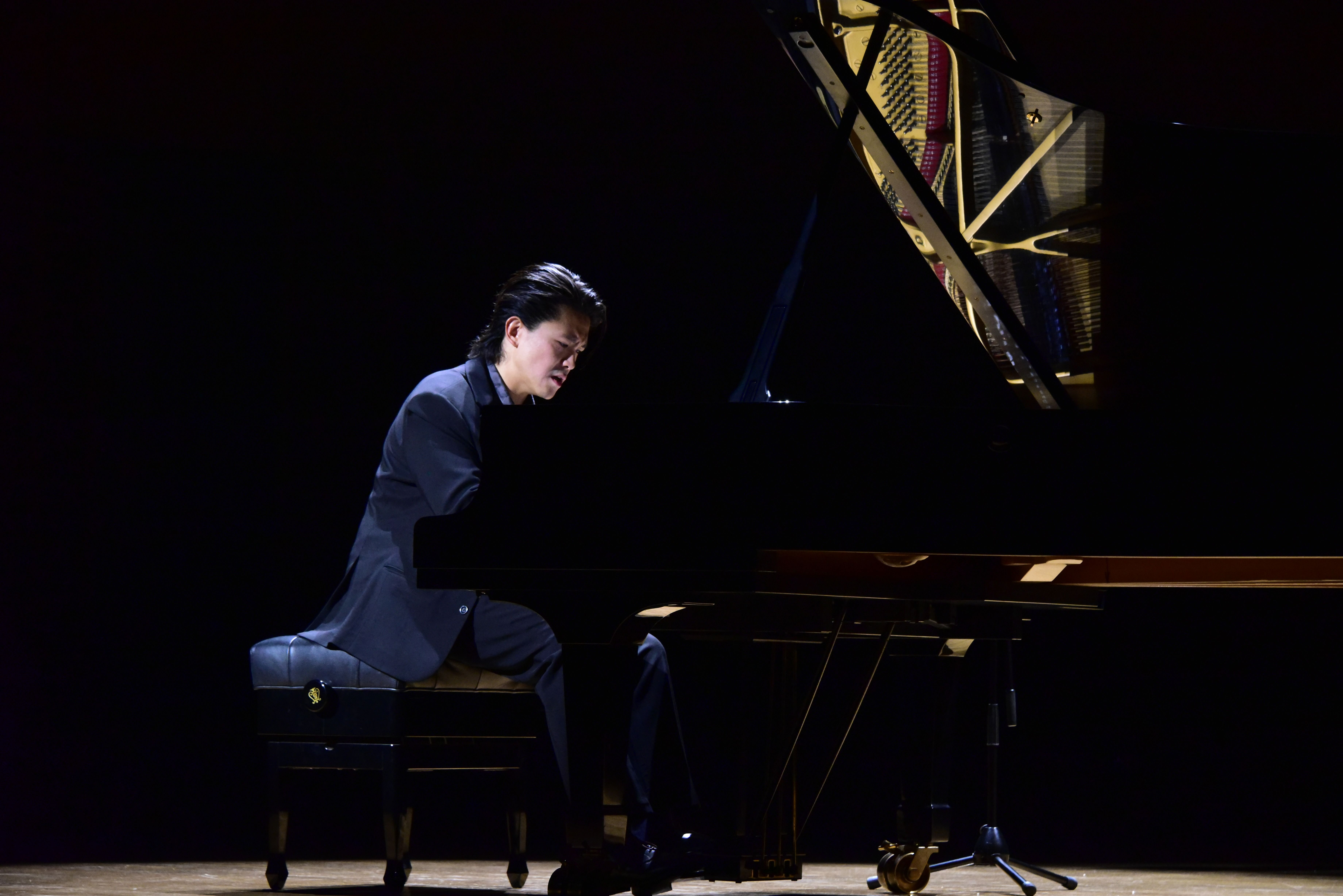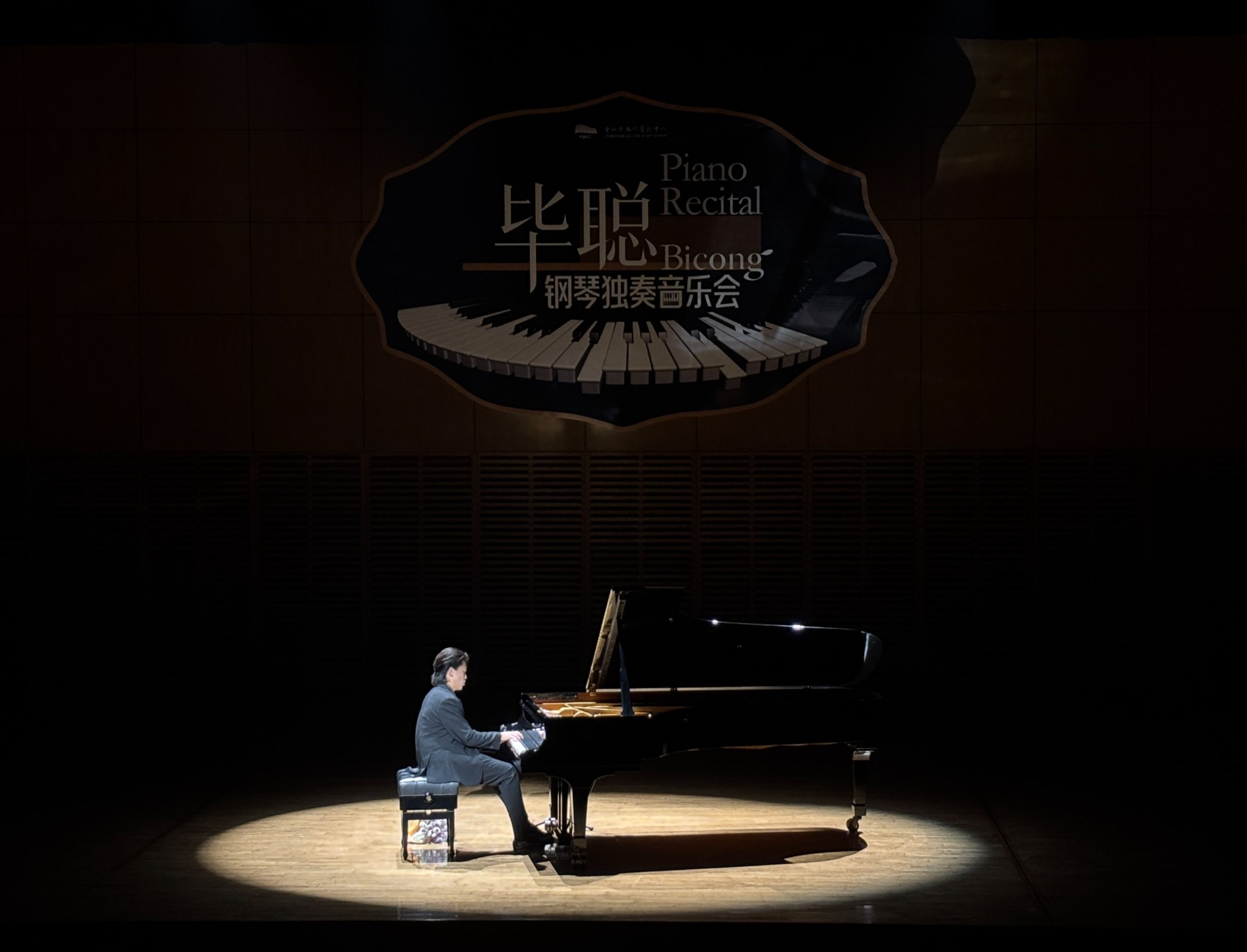 4月18日的独奏音乐会上,毕聪仅用左手演奏的曲目成为全场焦点。他首先以布卢门菲尔德的《左手练习曲》开篇,单手穿梭于88个琴键,却营造出丰满层次。对于戈多夫斯基改编的肖邦练习曲“离别”,他同样是以左手完成,兼顾了高音旋律、中音和声与低音伴奏。这首改编曲本就以登峰造极的技术难度著称。接下来,他又完美演绎了多部“大曲”,为观众带来跌宕起伏的审美体验:贝多芬《英雄变奏曲》从简单主题徐徐发展至宏大乐章;而贝多芬著名的《华尔斯坦奏鸣曲》以全面技巧与充沛能量将气氛推至高潮;肖邦《第四叙事曲》则以深沉情感为整场压轴。