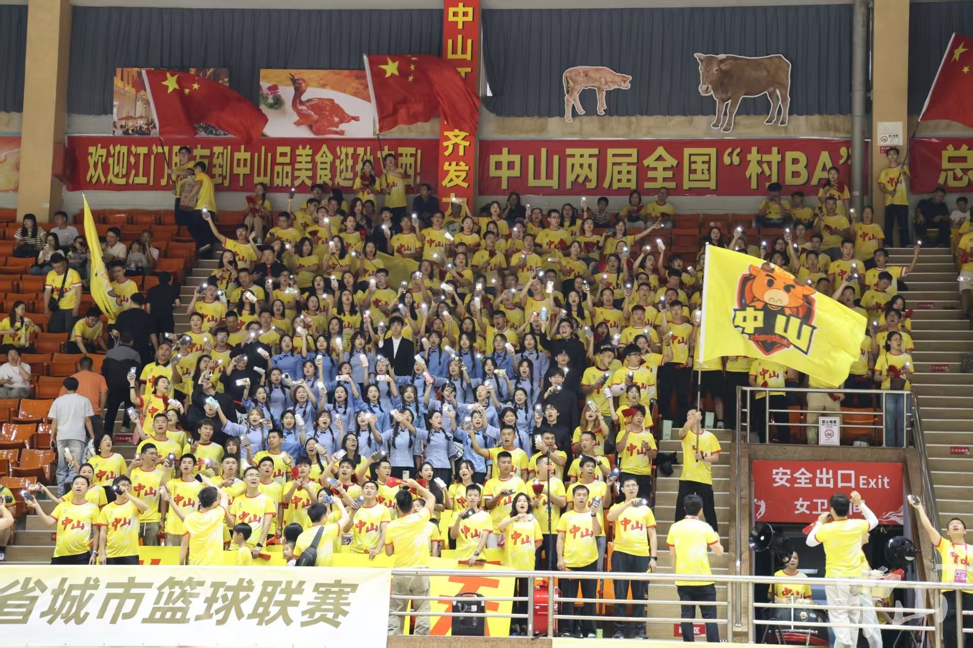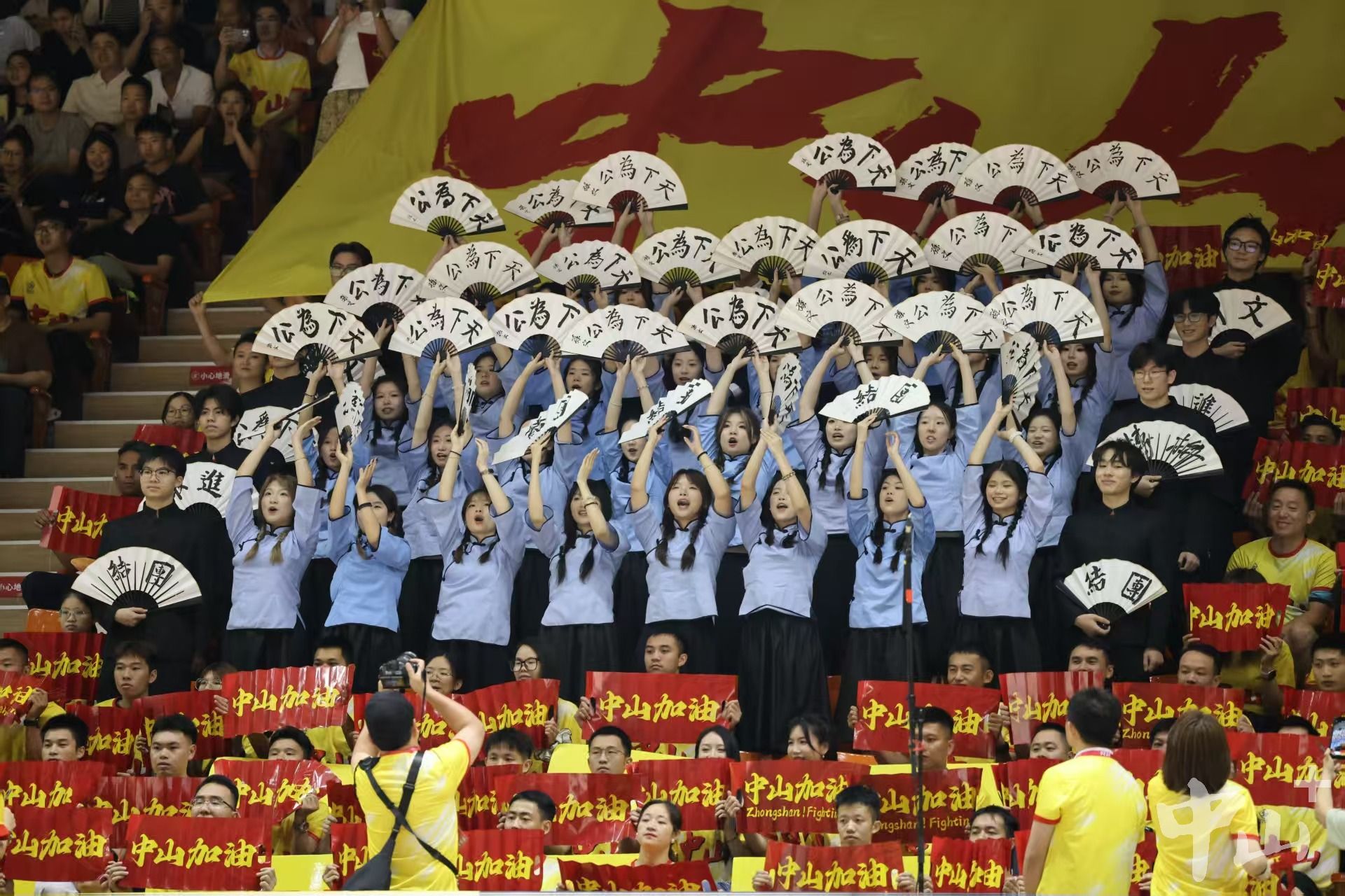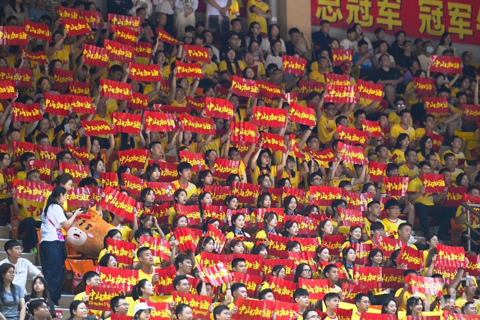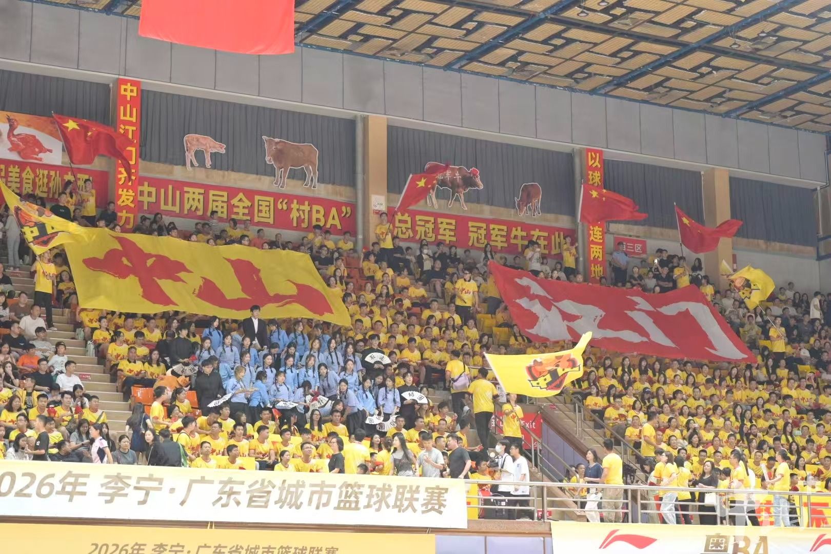 4月25日晚,2026年广东省城市篮球联赛常规赛第五轮开赛,中山队主场迎战江门队。赛场上,球员们每分必争;赛场旁,中山球迷和拉拉队也“花式”为他们呐喊助威,既希望中山队延续连胜态势、坐稳西区榜首,也不忘向同为侨乡的、远道而来的江门送上欢迎和祝福。