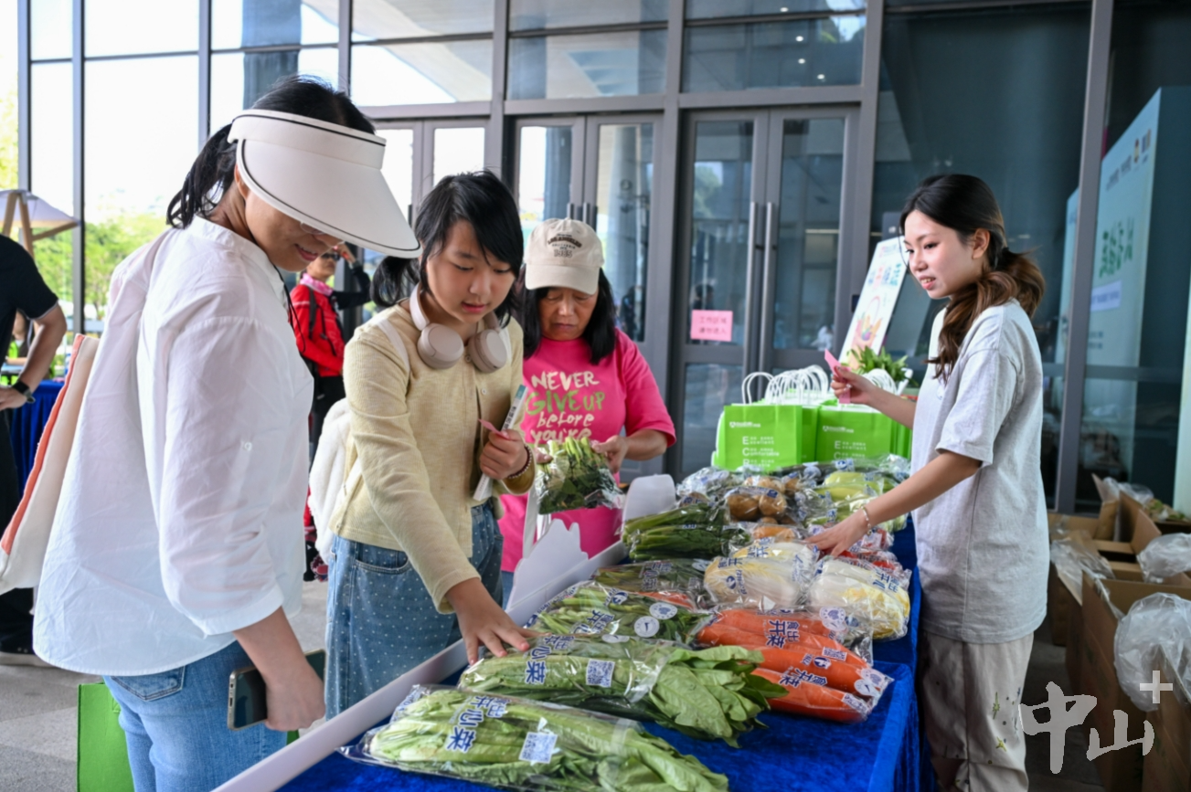 现场,“以书换蔬”摊位非常亮眼,菜心、胡萝卜、西蓝花、土豆、油麦菜等蔬菜前,放着卡通俏皮的装饰卡片,鼓励大家以闲置书本兑换蔬菜。