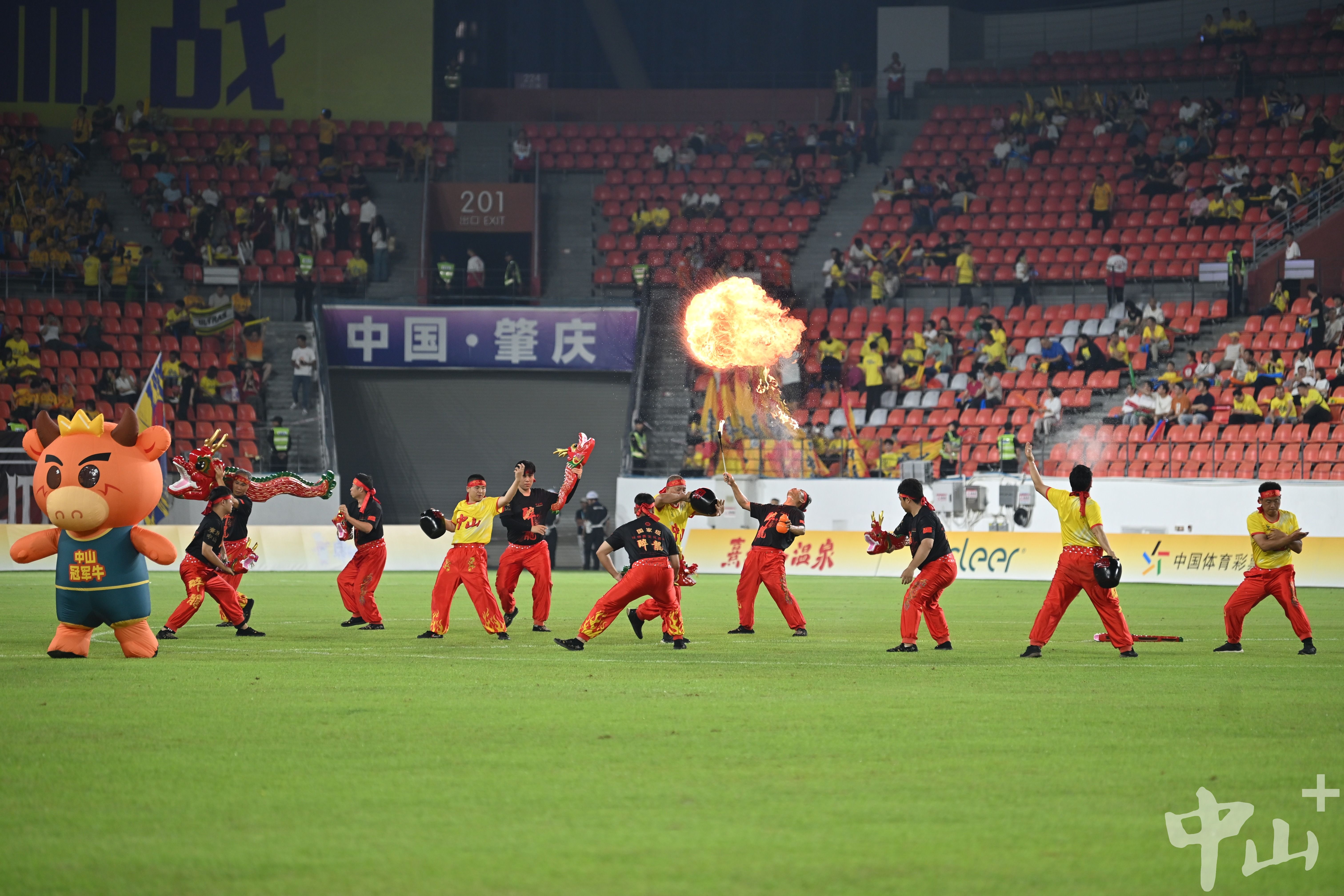 暖场表演时,中山醉龙火力十足。