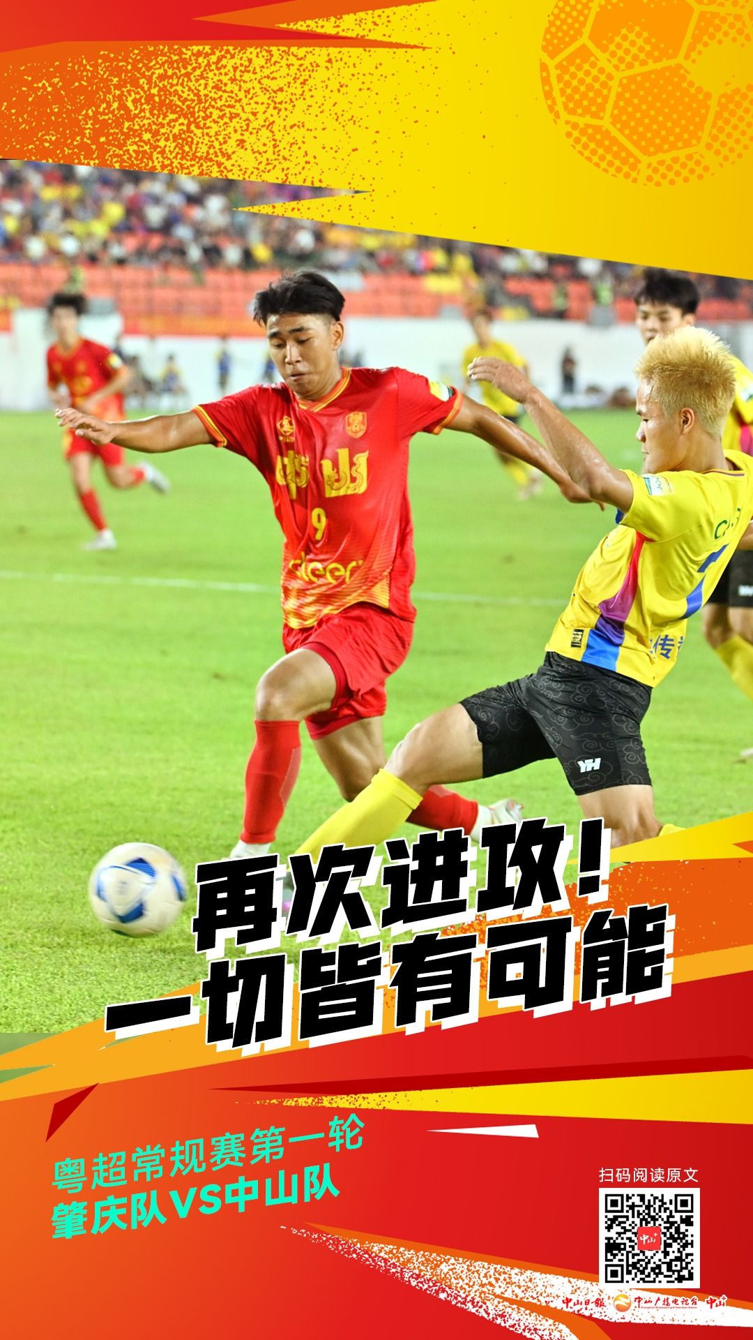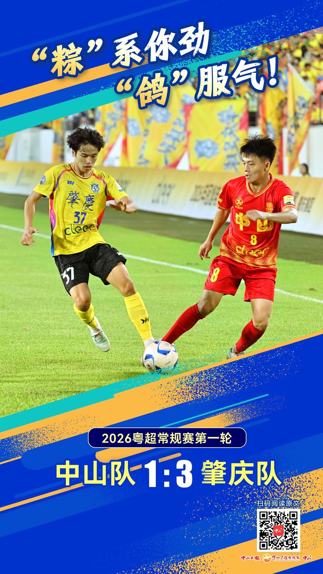 创意海报丨粤超首战惜败!中山队,撑你到底!