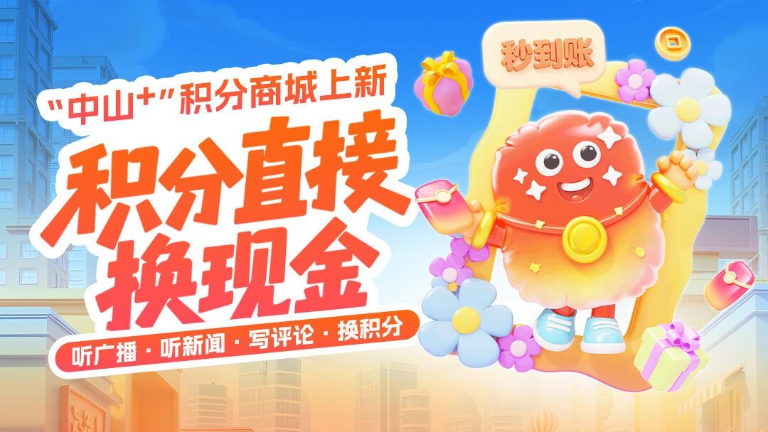 不限时间、不限地点,进入“中山+”积分商城,积分可以随心兑换现金或者实用好物。