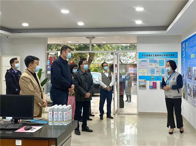 随后,关永清主任带领检查组查看社工中心的示范创建工作,她向检查组介绍了东区禁毒社工服务中心的建设情况、社戒社康工作进展、特色禁毒宣传模式以及东区禁毒协会推动禁毒工作“社会化”工作情况等。闫宏伟充分肯定了东区在禁毒社会化工作所取得的骄人成绩,并鼓励东区继续贯彻习近平总书记对禁毒工作的重要指示,继续以高标准高要求严格落实到位各项工作部署,不断巩固禁毒工作成效。