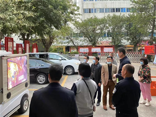12月5日,在中山市公安局禁毒支队政委黄衡、市公安局禁毒支队副支队长蔡军的陪同下,重庆市公安局禁毒总队政委闫宏伟、湖北省咸宁市公安局禁毒支队副支队长肖常云、广东省公安厅禁毒局预防教育处副科长梁灿鋆莅临中山东区检查验收中山市全国禁毒示范城市创建工作。