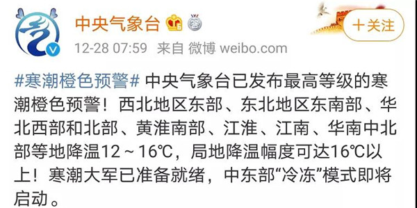 发布寒潮橙色预警!
