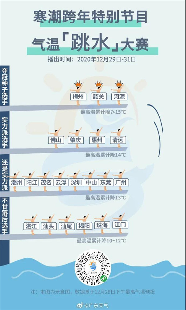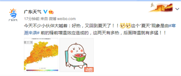@广东天气 预计,今天(29日)下午寒潮的前锋将到达粤北,并自北向南影响广东,傍晚到达广州,半夜前后到达沿海;将给我省带来急降温和低温霜(冰)冻天气,其中粤北高寒山区将有分散小雨(雪)。