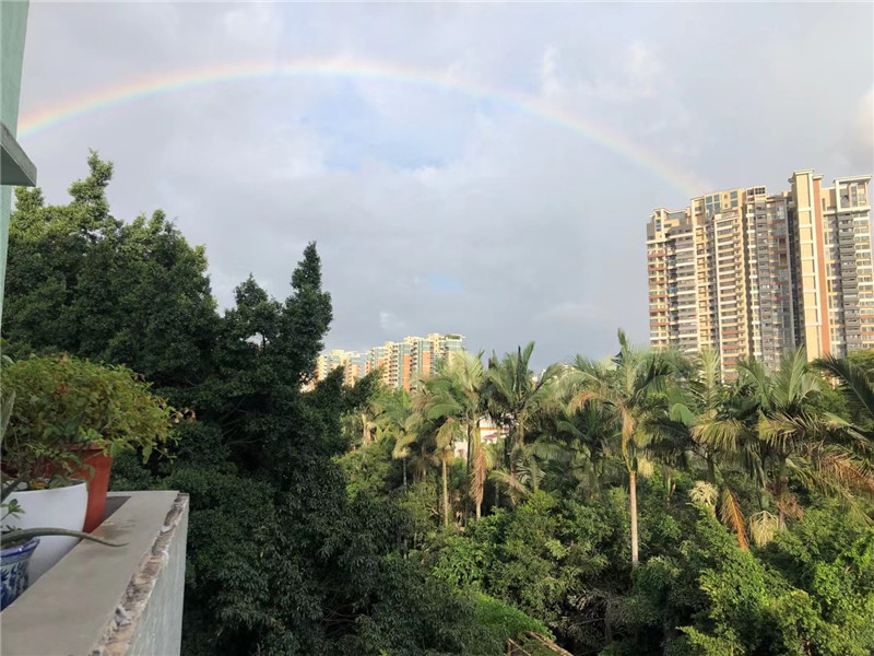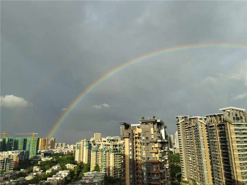 九月份第一天,中山“神兽”归笼。临近下班时分,中山主城区天空划过一道彩虹,漂亮的弧线映衬着雨后的街景更加靓丽。据中山市气象台预测,未来一周中山天气以多云、阵雨为主。这种天气下,也许未来几日还会“偶遇”彩虹。