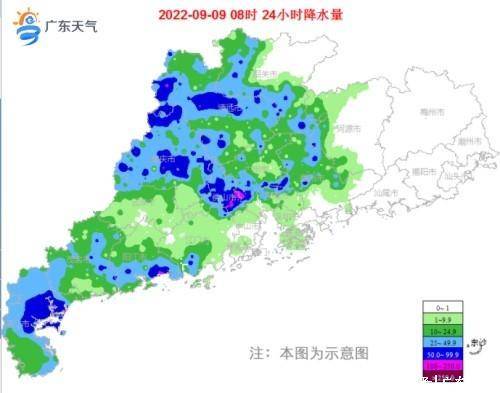 预计,9日,广东西部市县有阵雨或雷雨,局部暴雨;10-12日雨势减弱,大部市县多云。其中,珠江三角洲和粤西市县(午后到上半夜)将伴有分散(雷)雨,局部大雨;中秋夜大部市县可见月光;9-12日,广东大部气温总体平稳,介于31℃~35℃之间,局部36℃左右。需防御局地雷电、短时强降水带来的灾害;假期注意交通安全和户外用火安全。