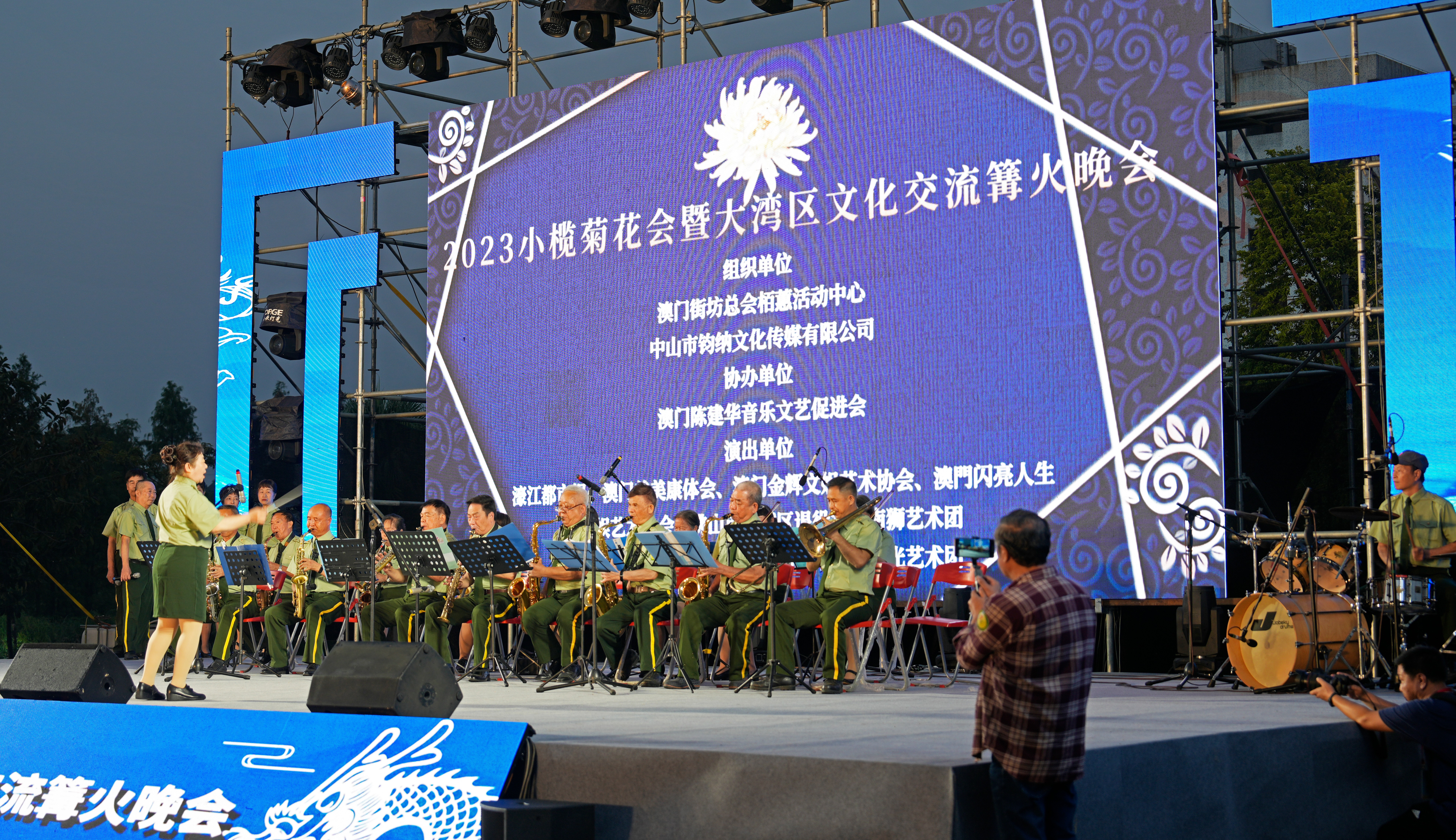 11月23日晚,在小榄菊花园内,2023小榄菊花会暨大湾区文化交流篝火晚会精彩上演。现场,来自澳门、中山、佛山等粤港澳大湾区城市的表演者们齐聚一堂,以乐器合奏、舞蹈、独唱等形式,为市民游客送上艺术盛宴。台下观众听得如痴如醉,现场掌声不断。