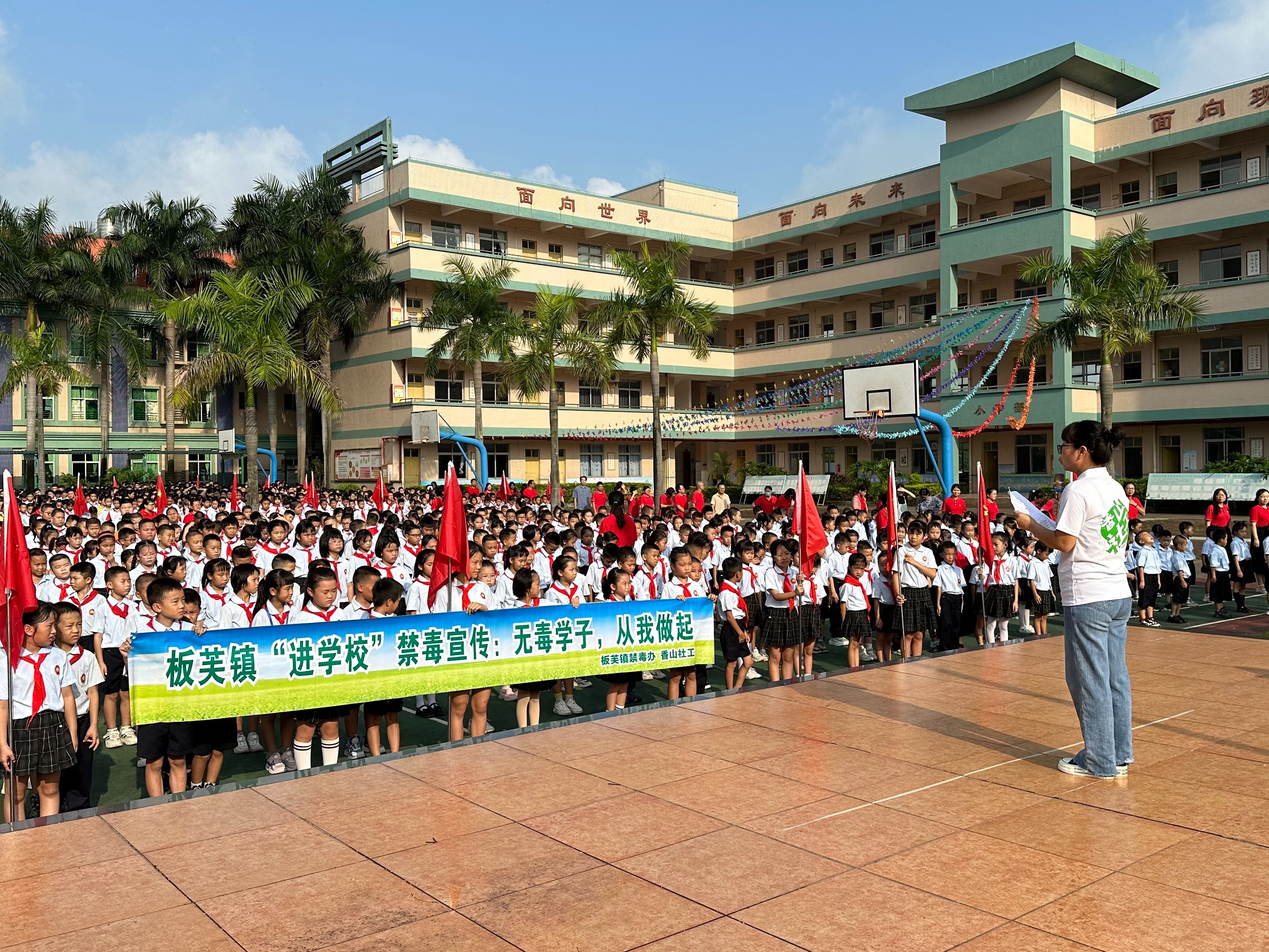 禁毒教育护成长:全体师生在升旗仪式上聆听了禁毒教育演讲,坚定了坚决向毒品说“不”的决心,共同书写无毒校园的美好篇章!