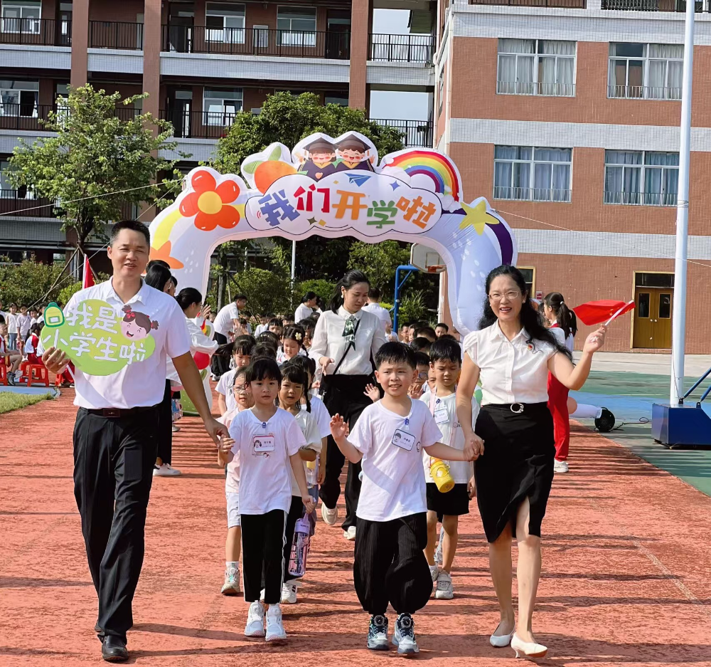 带着对新学期的美好憧憬,全校师生齐聚操场,在庄严的国歌声中拉开了开学典礼序幕。仪式感满满的迎新门在操场上特别耀眼,新同学、新老师一同走进此门,意味着在大丰小学这片沃土上正式开启一场新旅程。新老师的到来,为大丰小学注入了新鲜力量,助力同学们奋力追逐梦想。