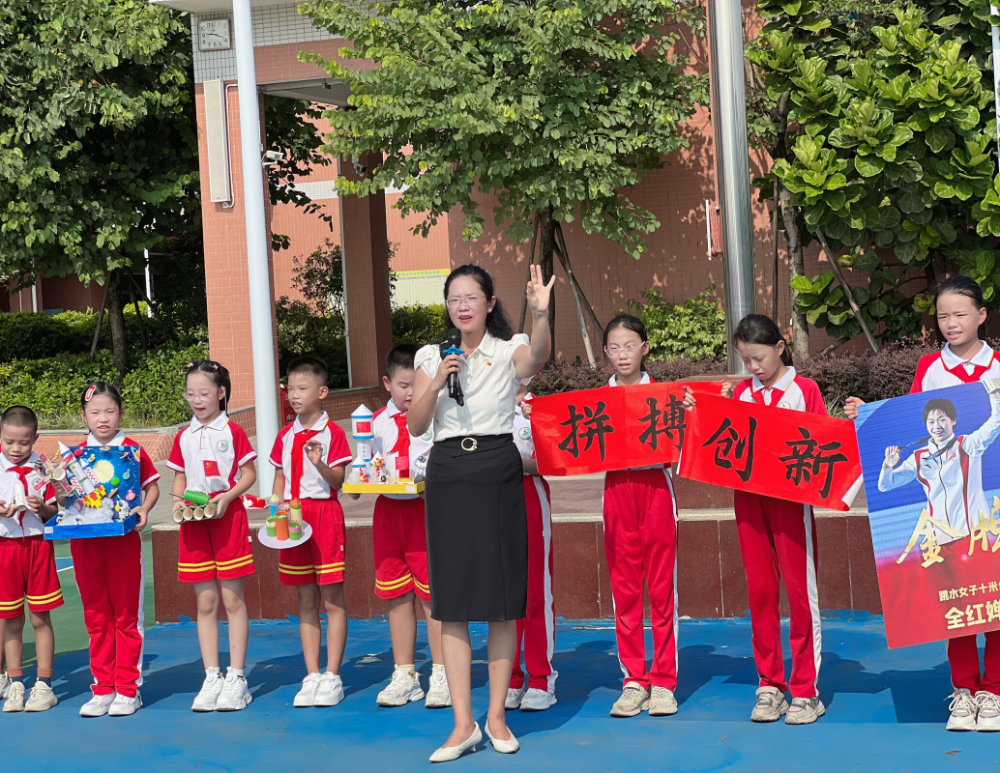 最后,黄校长寄语同学们:学习奥运冠军全红婵、陈艺文姐姐的“拼搏”“创新”精神,才能轻松“拿捏”新学期,做自己的冠军。