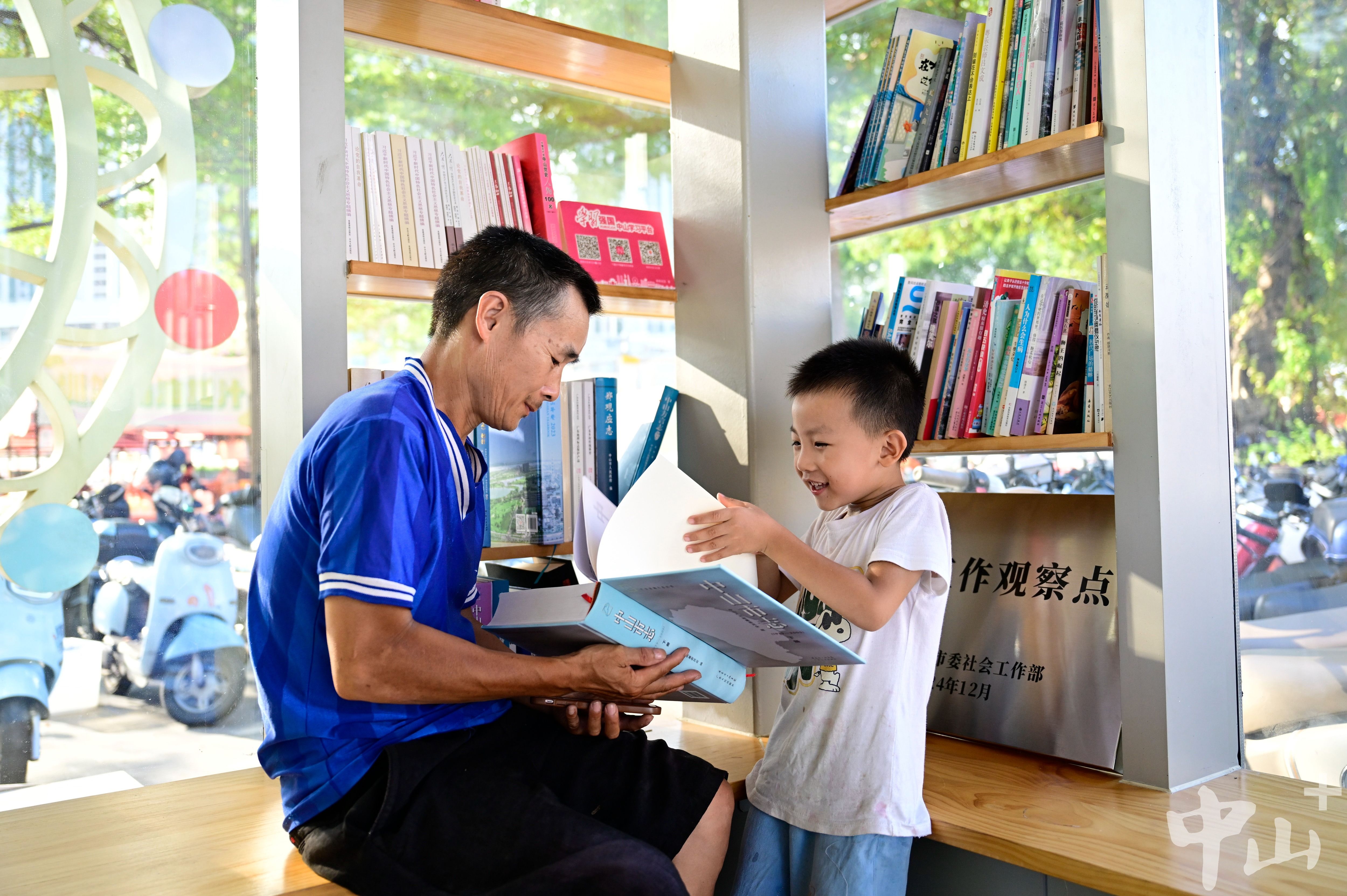 家住石岐街道的陈先生带着儿子在孙文西路步行街逛街,逛累了就走进香山古城党群服务站歇脚,他四年级的儿子在图书角津津有味的阅读起来。陈先生为在岗的党员干部和志愿者点赞:“我们的假期,因为有了他们的服务,更暖心了。”