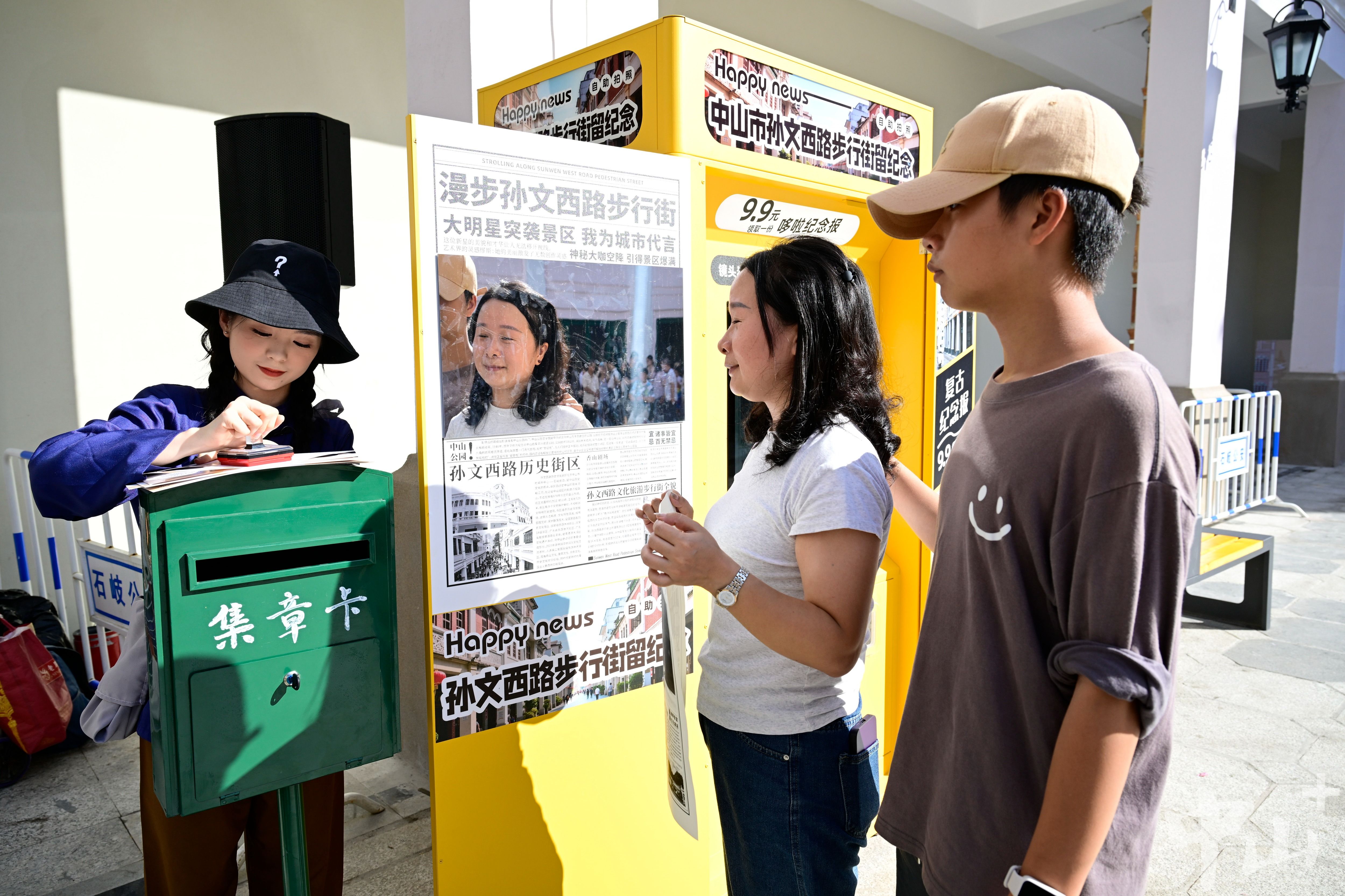 下午2时许,记者看到孙文西路步行街的各个活动点位已热闹起来。黄包车夫、卖报童、知识青年等充满年代感的角色早早到位,“香山奇遇记” 互动打卡活动再度拉开帷幕。市民与游客手持集章卡穿梭在各个点位,在角色扮演与游戏互动中,沉浸式感受步行街的建筑风貌与时代记忆的深度交融。