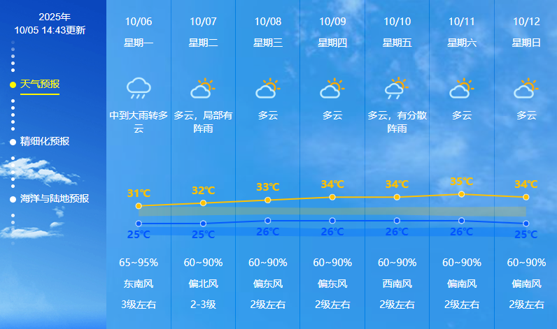 10月6日(中秋节):白天阵雨转多云,夜间部分时间可见月光。