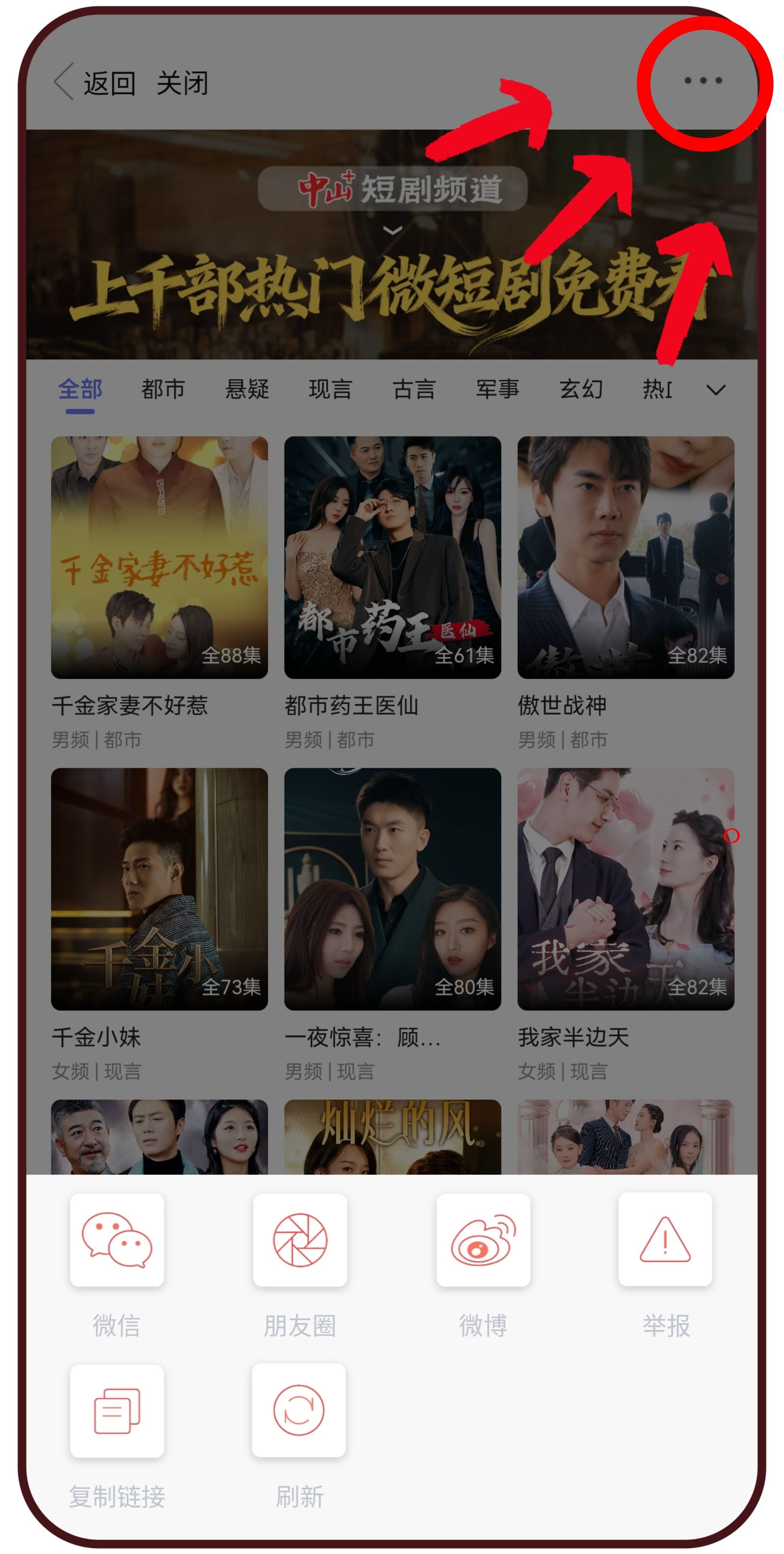 3.点击右上角“…”符号,把喜欢的剧分享给好朋友。