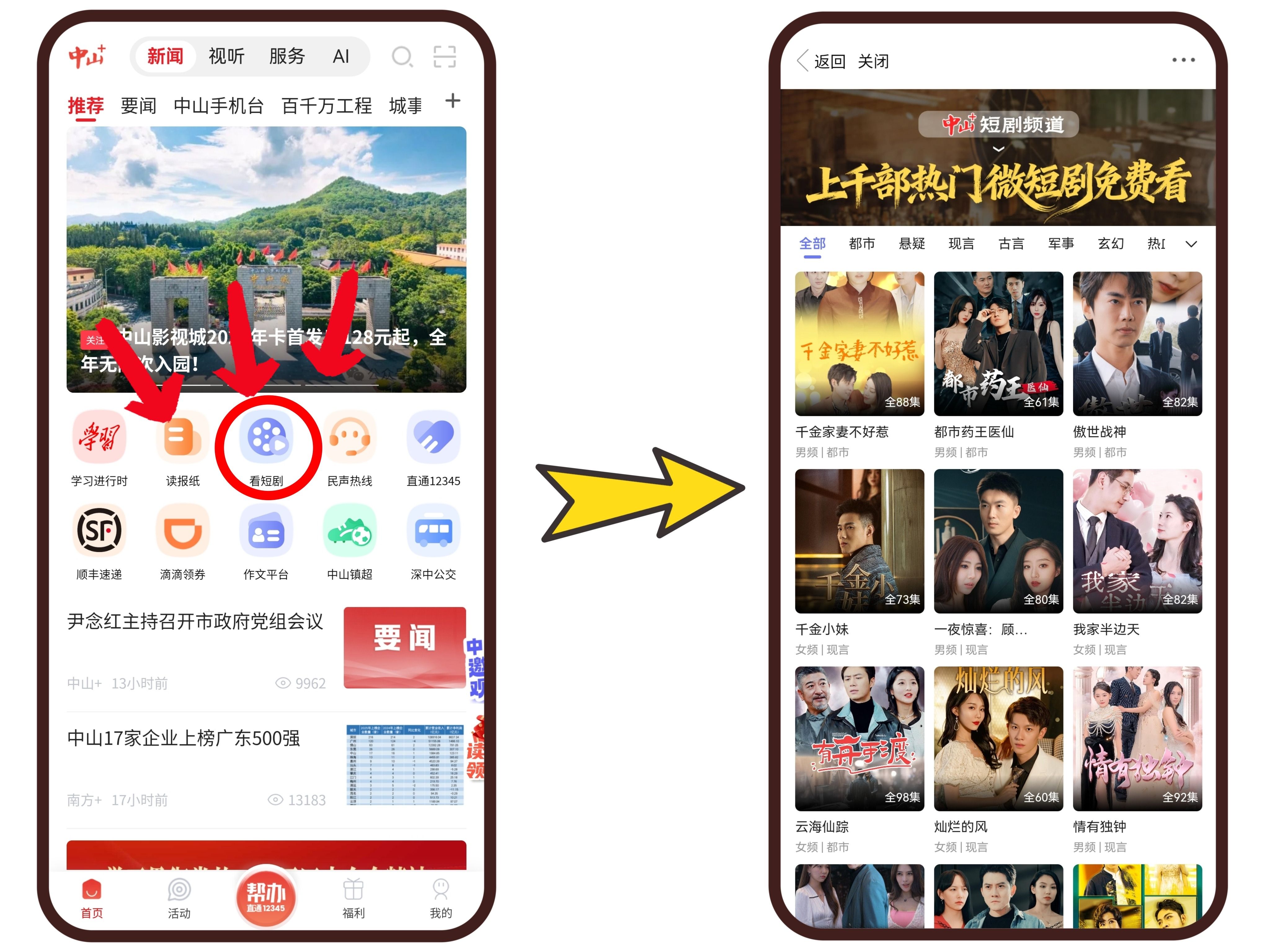 2.进入“新闻首页”,点击“看短剧”图标去刷剧!