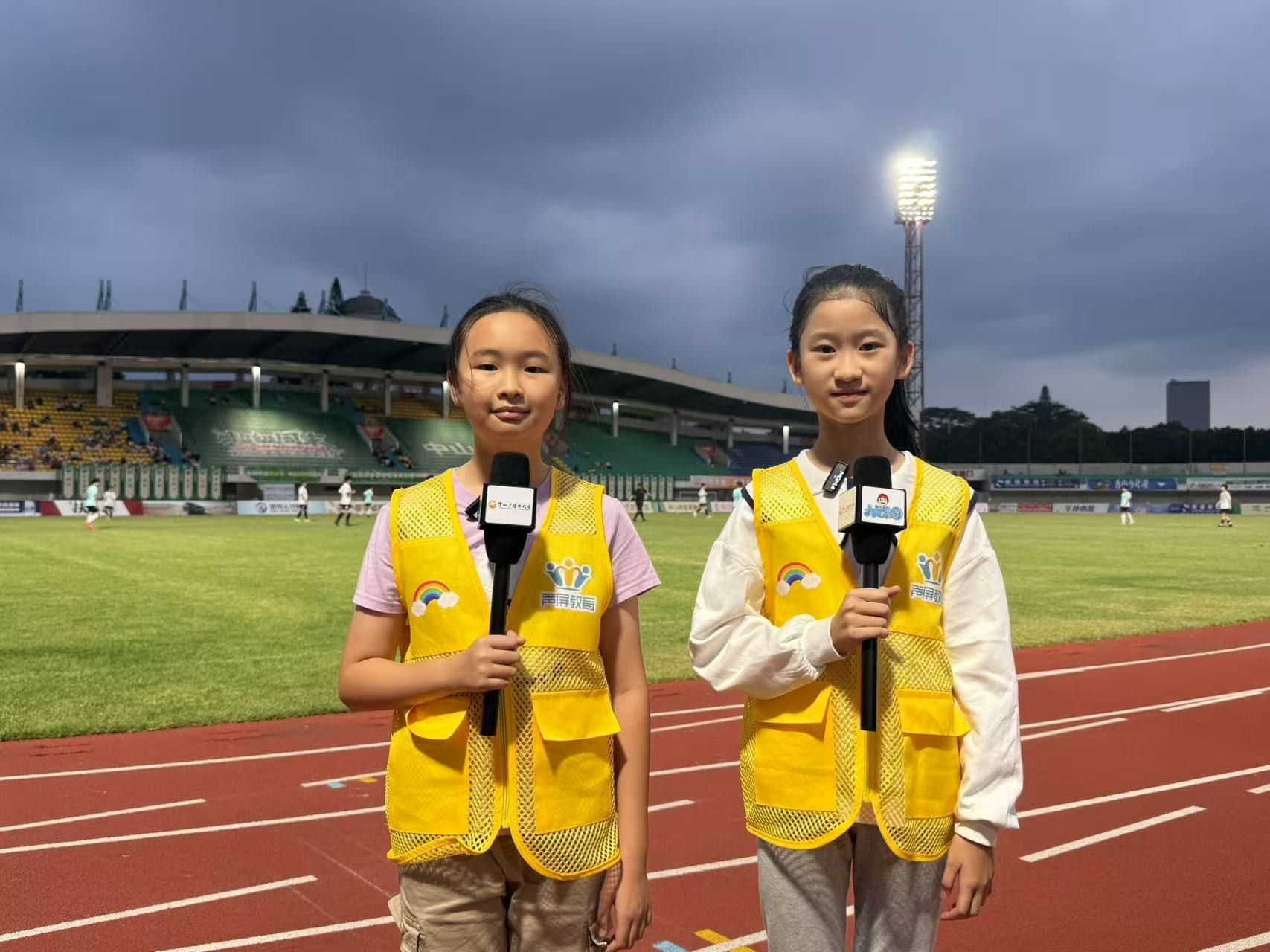 在现场,来自声屏教育的11名小记者正在采访足球队员。她们是第一次走进“中山镇超”现场感受足球赛的火热氛围,觉得十分兴奋。带队老师杨冬赟介绍,“中山镇超”很有特色,球队以镇街特色命名,巧妙地以足球为媒介,传递了地方文化。