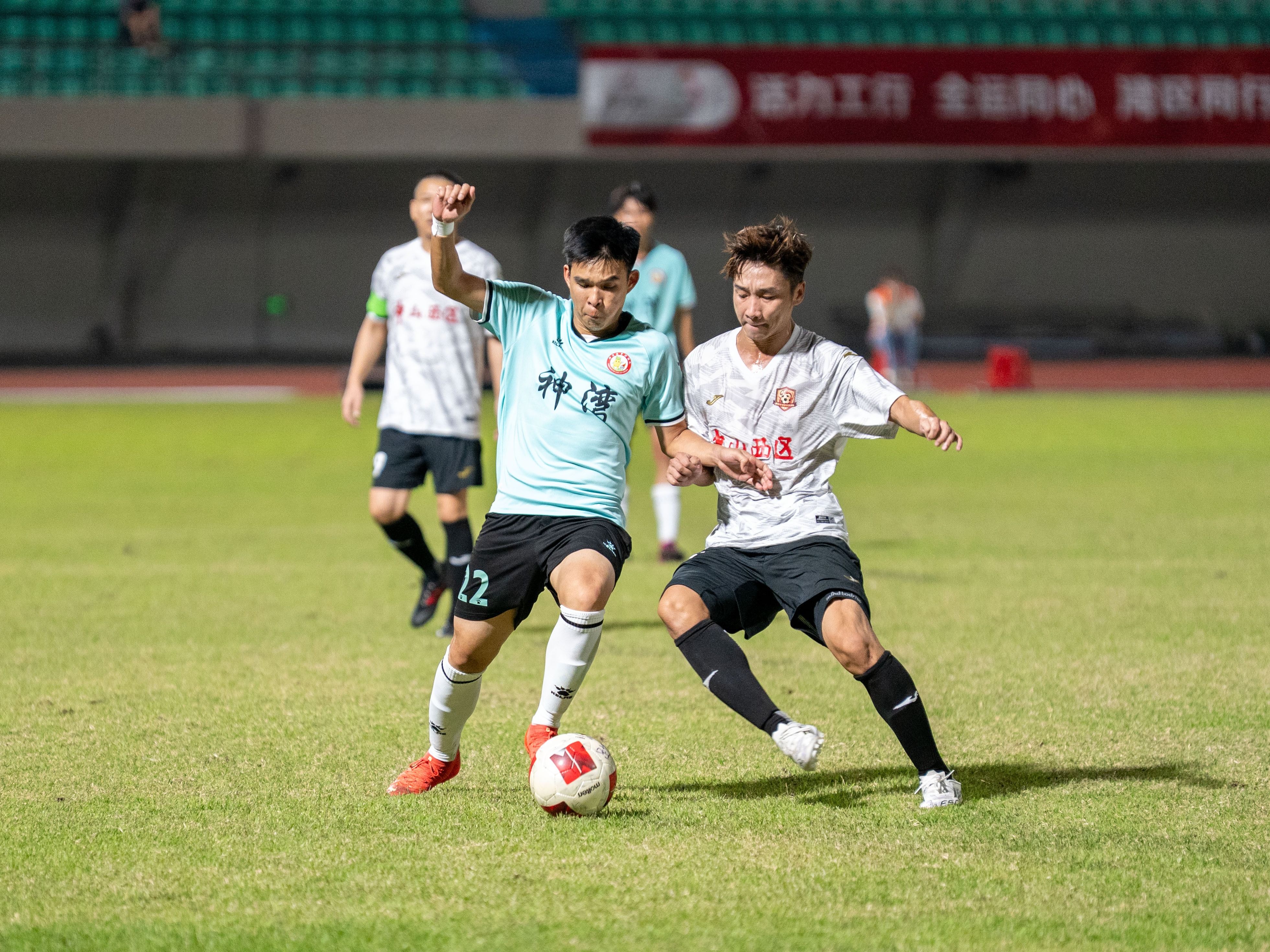 下午5时整,随着绿茵场上的哨声响起,两支足球队的角逐在高速对抗中拉开序幕。神湾菠萝队率先发起猛攻,不断向对方防线施压;而西区醉龙队则沉着应对,以密不透风的防守构筑起“铜墙铁壁”。上半场战罢,记分牌上的“0∶0”比分纹丝未动。
