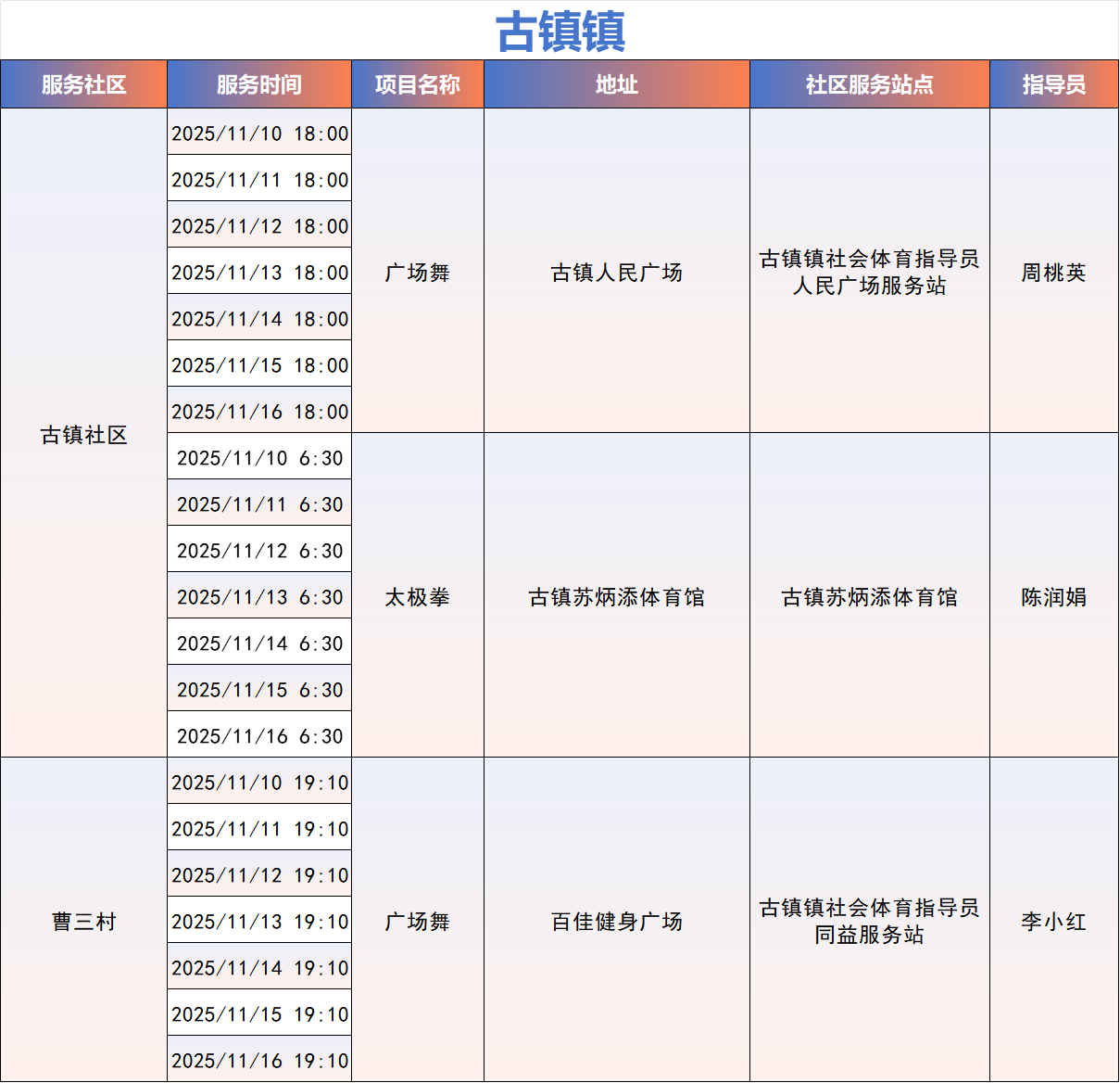 (注:实际按各镇街社会体育指导站点发布活动为准)