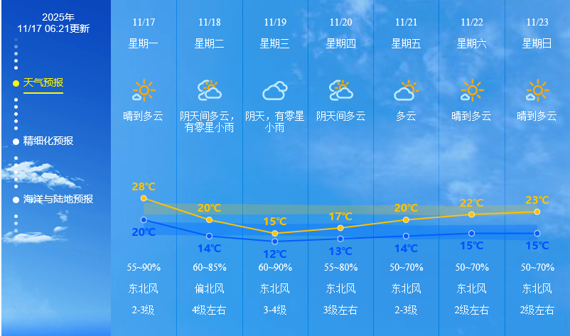 所以总结就是:17日上午粤北开始降温,当地的朋友们早上外出穿够衣服。珠三角、粤西、粤东等地17日降温或许不会特别明显,但从18日开始将感受“断崖式”降温。