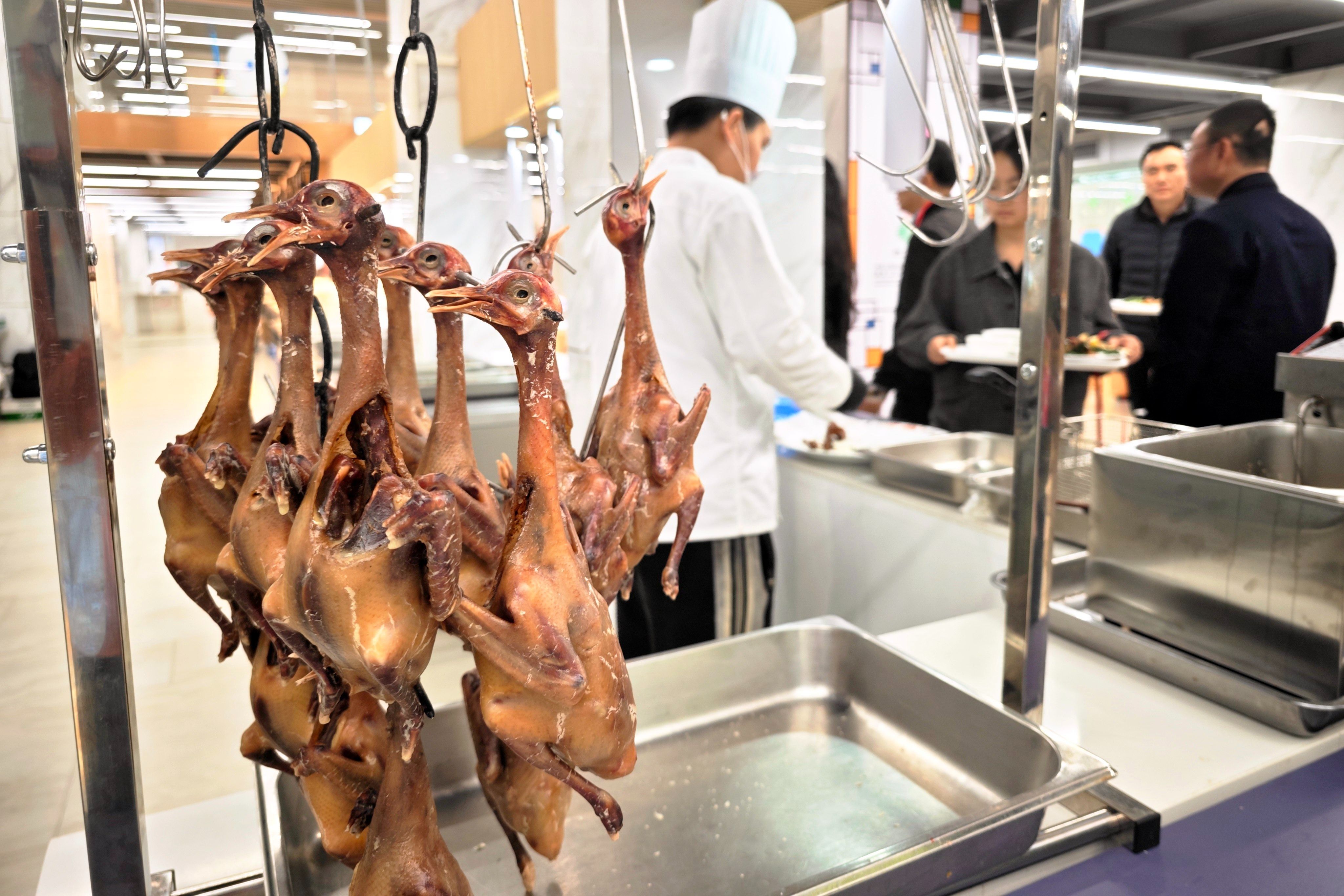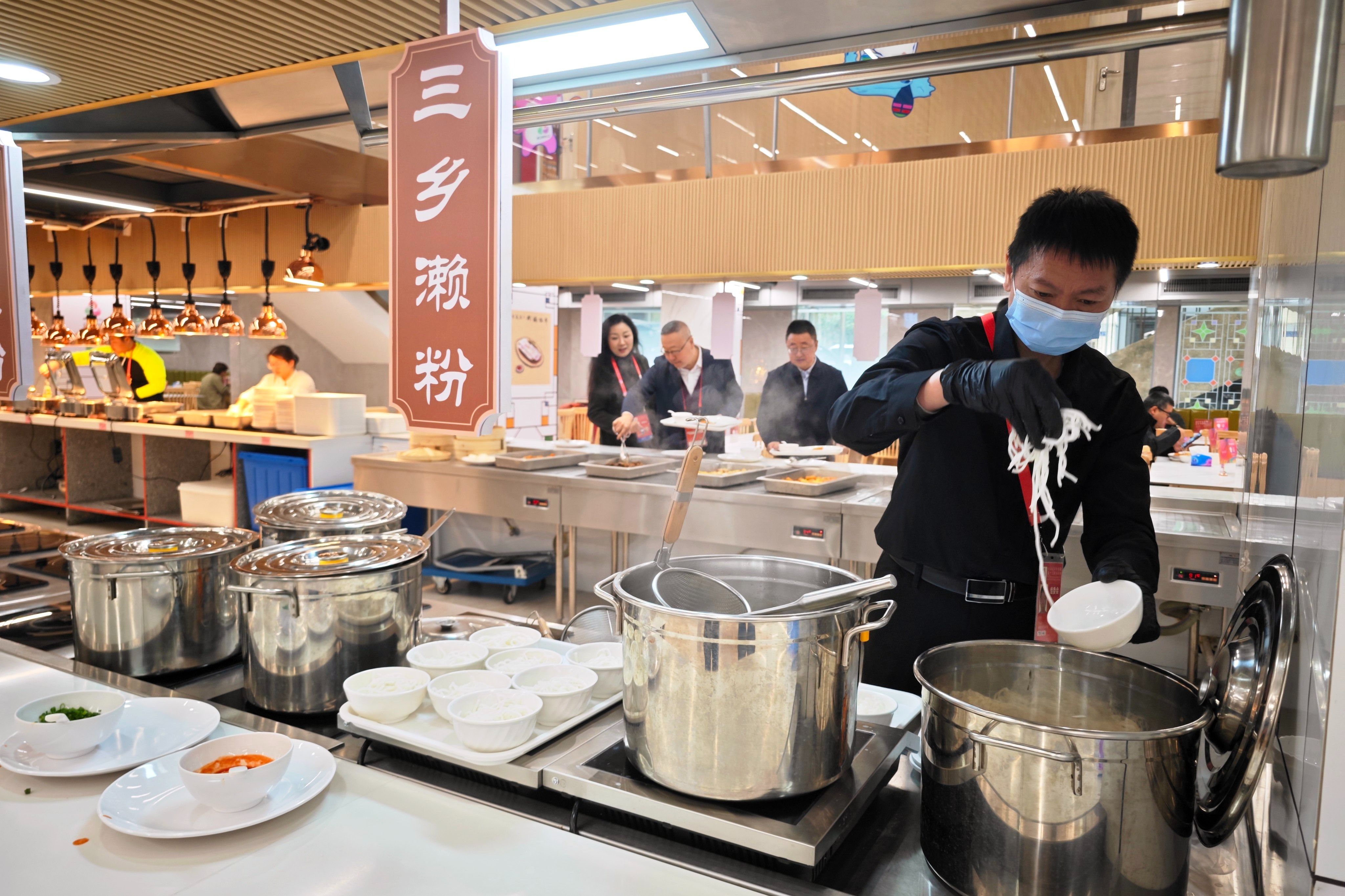 当天,主媒体中心餐厅持续供应石岐乳鸽、脆肉鲩、三乡濑粉等中山美食。岭南美食展演项目负责人陈伟斌介绍道,餐厅准备了8道具有中山特色的美食,既有红烧石岐乳鸽、菊花捞起脆肉鲩、黄圃腊味小炒皇、神湾菠萝咕噜肉、白切三角沙栏鸡等中山地方特色的美食,也有栾樨饼、三乡濑粉等中山小吃。“这些菜的原材料都是从中山采购回来的,由莲香楼酒家的厨师现场制作。”陈伟斌说,餐厅每天接待近300名来自全国各地的记者,当天光石岐乳鸽就供应了40多只。
