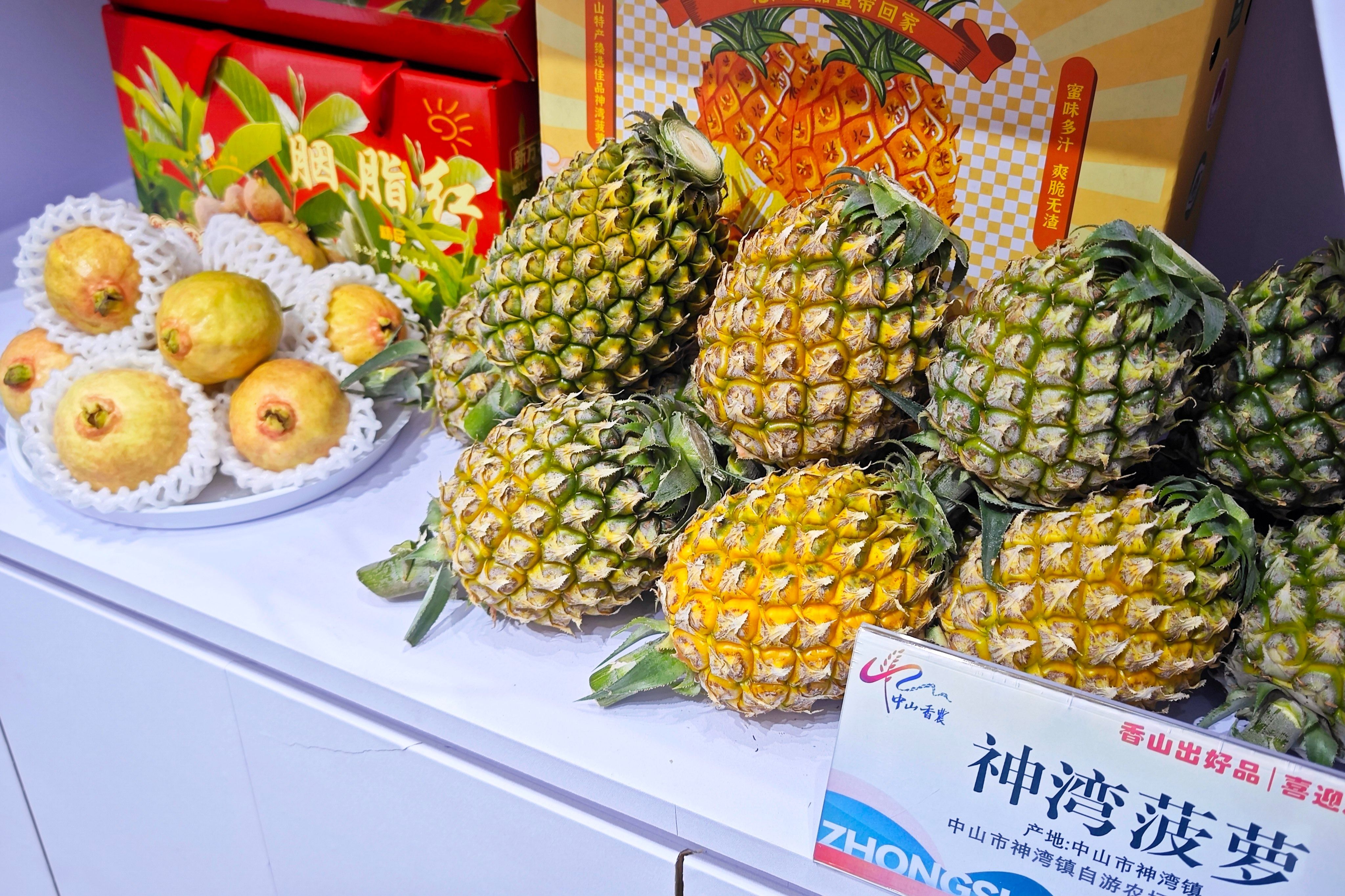 “这款胭脂红番石榴,产自中山市坦洲镇,口感软糯,香气浓郁,您尝尝看!”市农投公司宣传运营部工作人员毛俊云现场化身“推介官”,详细讲解每款产品的种植工艺与文化故事。记者看到,五桂山金煌香芒制成的芒果干色泽金黄,入口酸甜软糯;坦洲胭脂红番石榴香气独特,清甜多汁;皮薄肉甜、爽脆无渣的神湾菠萝更是成为现场的“人气明星”,引得大家纷纷驻足品尝、赞不绝口。