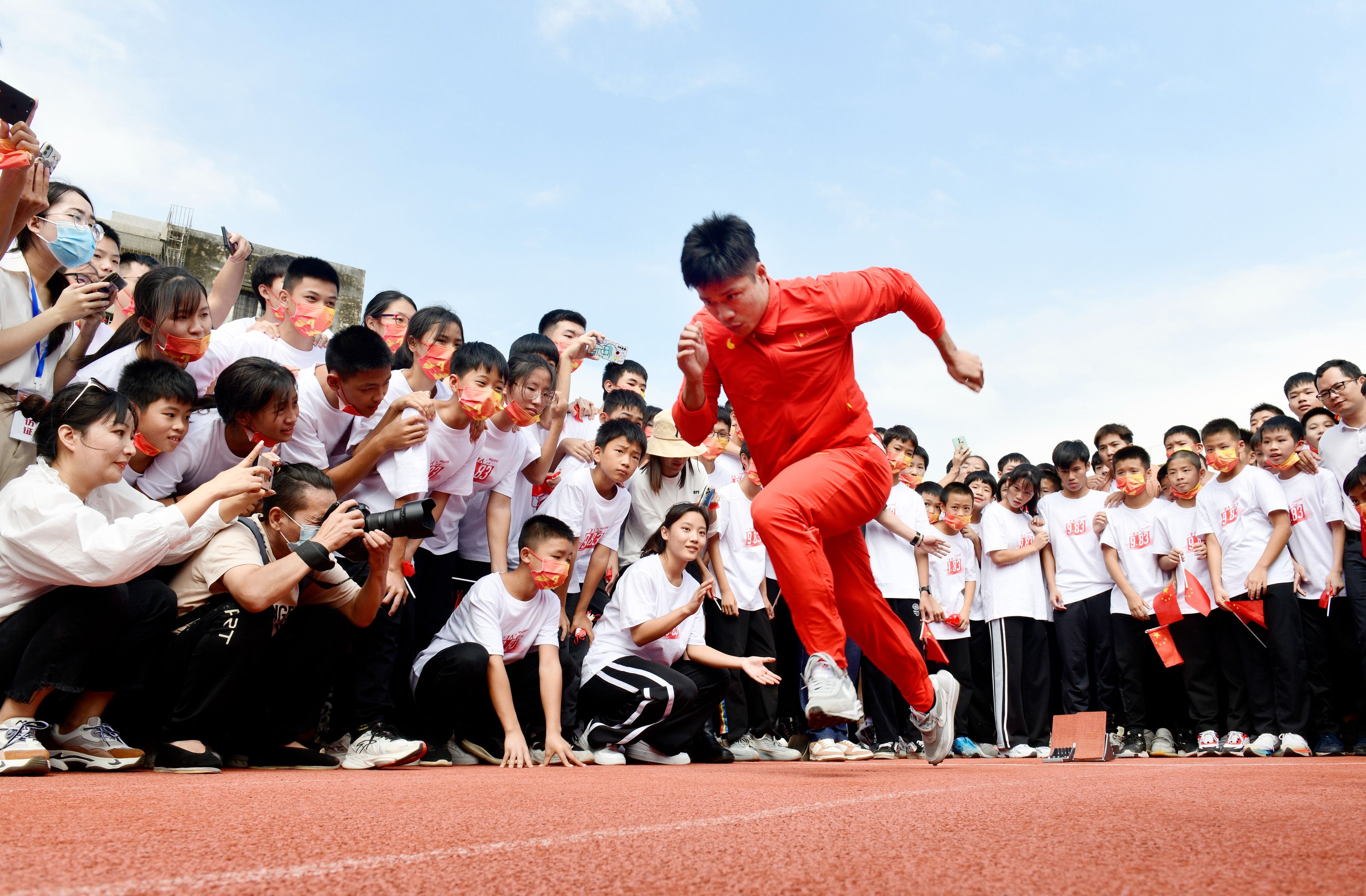 作为暨南大学体育学院院长,他的办公室里挂着两张照片:一张是东京奥运的起跑瞬间,一张是和小学生击掌的温情画面,一边是自己的传奇,一边是中国短跑的未来。本届全运会上,16岁的浙江小将陈妤颉打破亚洲青年纪录,“00后”湖北选手李泽洋夺得男子百米金牌,中国短跑的下一程,正由年轻的身影继续奔跑。新生代的崛起让苏炳添满眼期待:“中国人未来能跑到9秒76、9秒77。”
