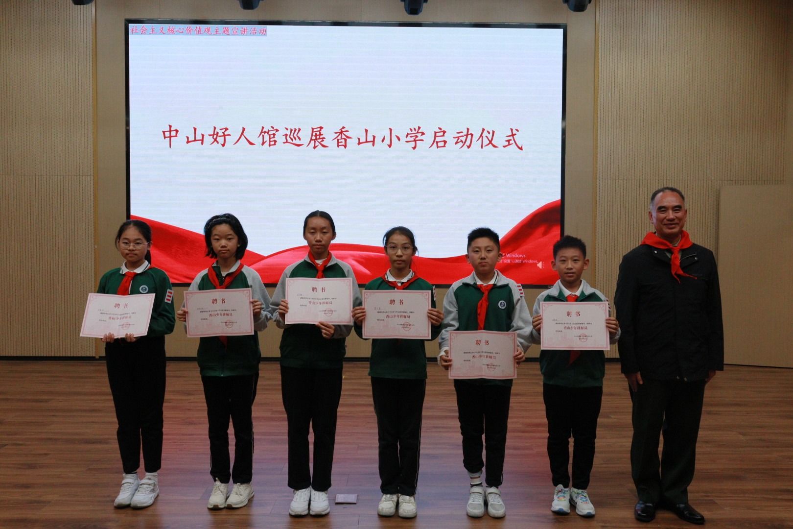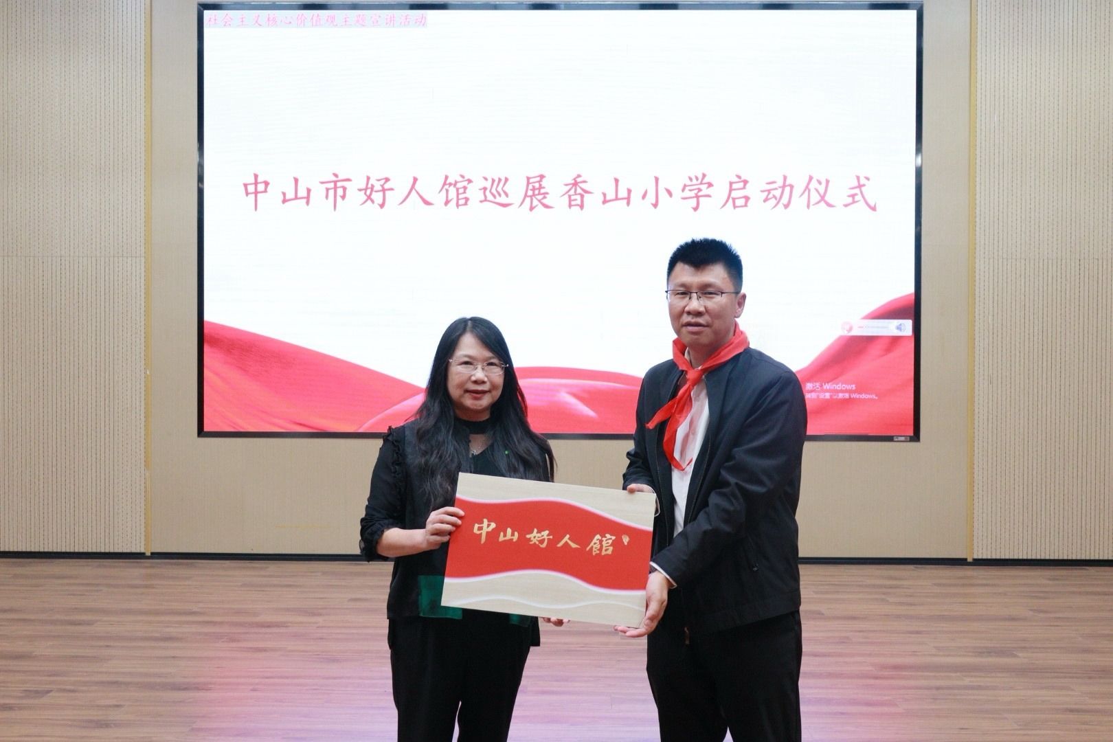 香山小学专场活动中,“中山好人馆巡展香山小学站”同步启动。市文明办向校方传递中山好人馆流动展板,为学生颁发好人馆志愿讲解员聘书,鼓励其化身“好人故事传播者”,让向善种子在校园沃土中扎根发芽。