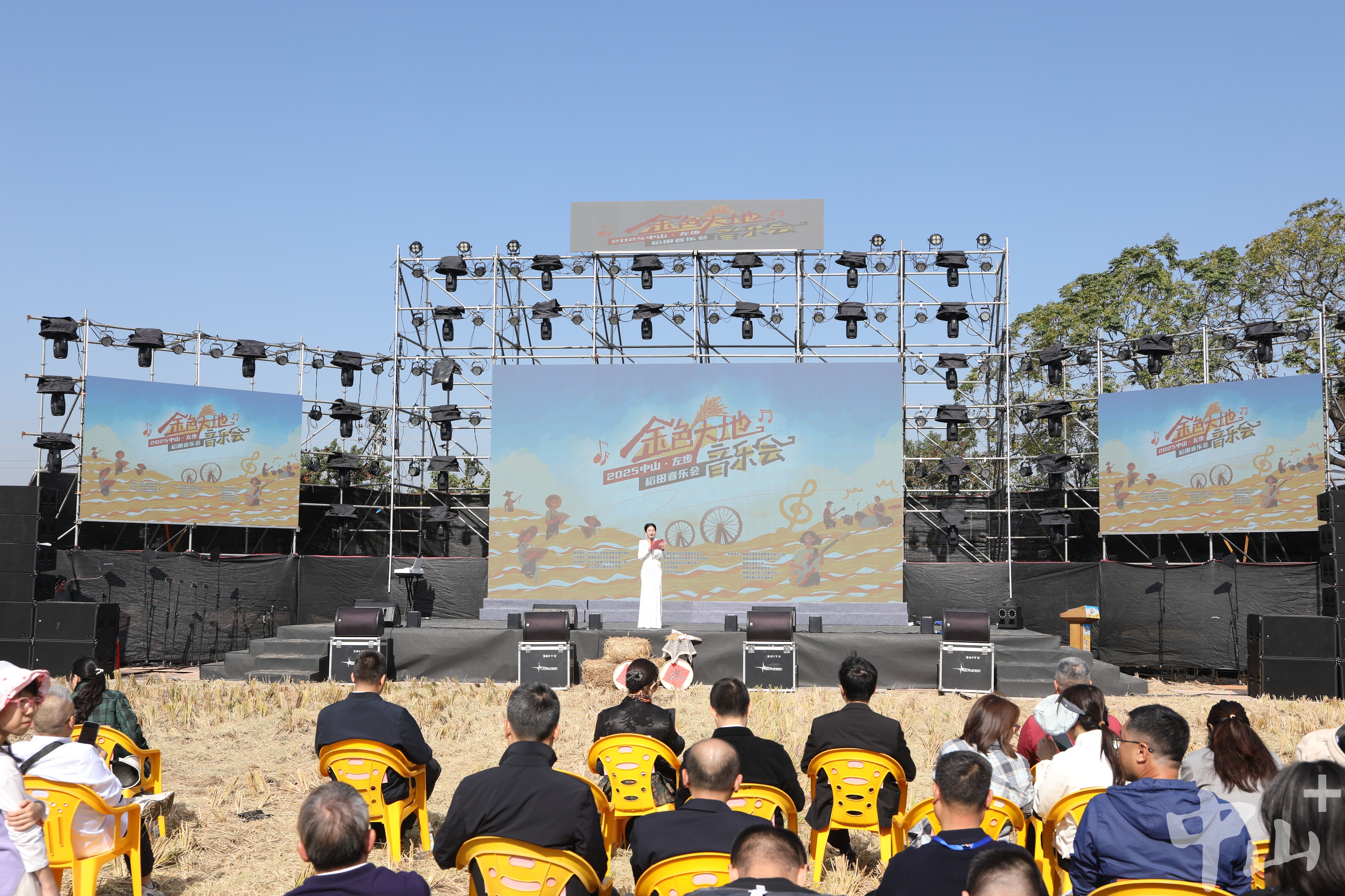 稻浪翻滚,稻香四溢。11月22日10时,在中山市南朗街道左步村稻田区,伴随着原创歌曲《拥抱翠亨》的悠扬旋律响起,为期两天的2025中山·左步稻田音乐会启幕。