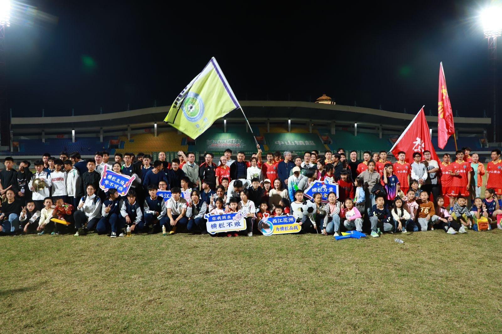 当晚,横栏西江花洲队400多人组成拉拉队也非常抢眼。“横栏发布”专门提前发布信息,邀请群众到现场为足球健儿鼓劲加油,并发出文明观赛倡议书。该镇党政主要领导到现场观战,横栏镇师生组成的拉拉队加油鼓劲声此起彼伏。