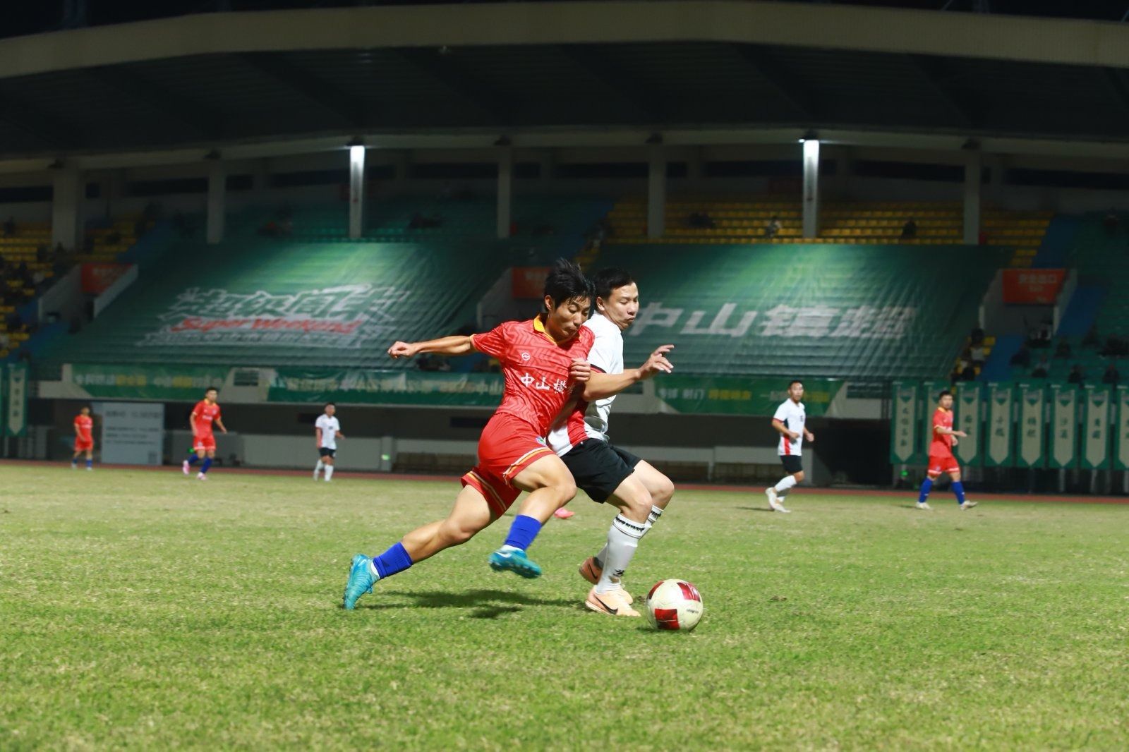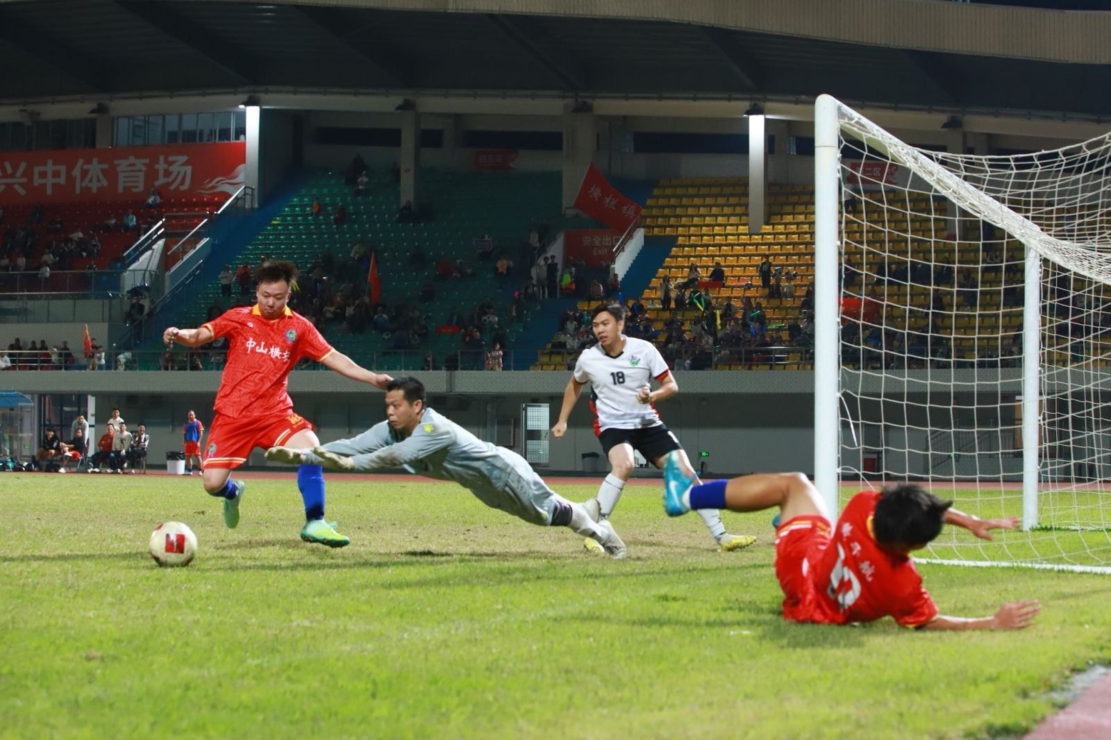 11月23日,兴中体育场内,2025中山市镇街足球赛激战正酣。