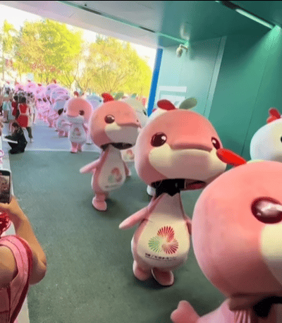 十五运落下帷幕,但吉祥物“喜洋洋”与“乐融融”热度不减。虽然灵感来源于“中华白海豚”,但一粉一白的配色,像极了广东经典菜品“白切鸡”和“豉油鸡”。于是热衷于“搞事”的网友们给它俩起了“自带岭南烟火气”的昵称——“大湾鸡”。