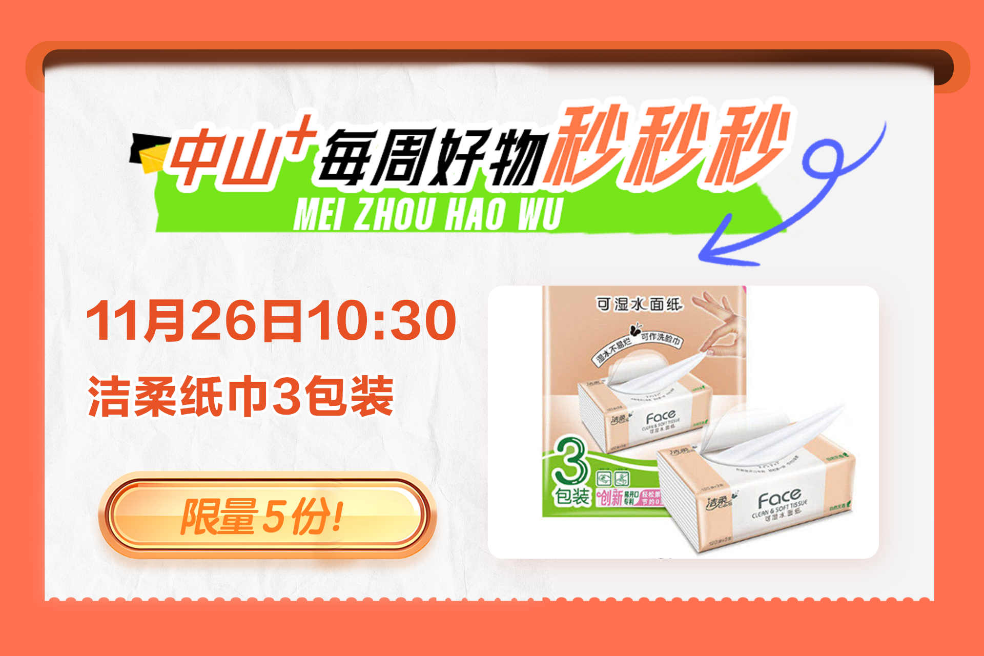 划重点:每周秒杀仅限30天内注册的“中山+”新用户,每周三10:30(如遇节假日顺延)准时开抢,每个用户每期可参与秒杀1次。