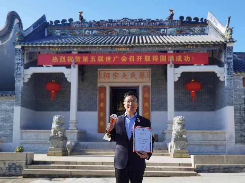 11月25日,第五届世界广府人恳亲大会在广府祖地韶关南雄珠玑巷开幕。在这场全球广府人的盛会上,中山侨胞蔡嘉毅荣获第五届世界广府人“十大杰出青年”称号。