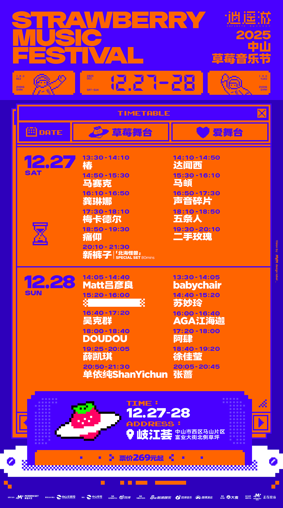 12月27日和28日,单日仅限1次入场;含音乐节单日票门票1张,以及专属权益(草莓舞台和爱舞台前排观演;专属检票通道;优先30分钟检票入场;官方指定饮品×1;官方特定周边8折)